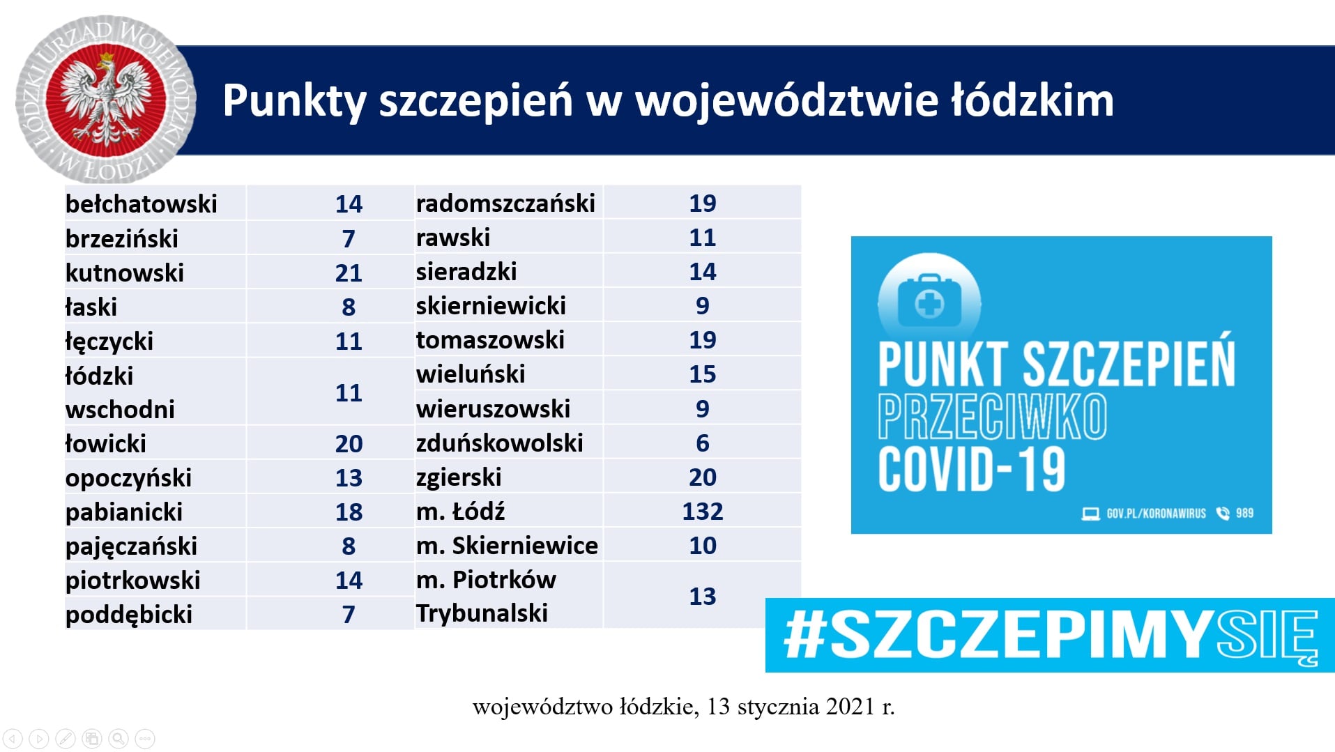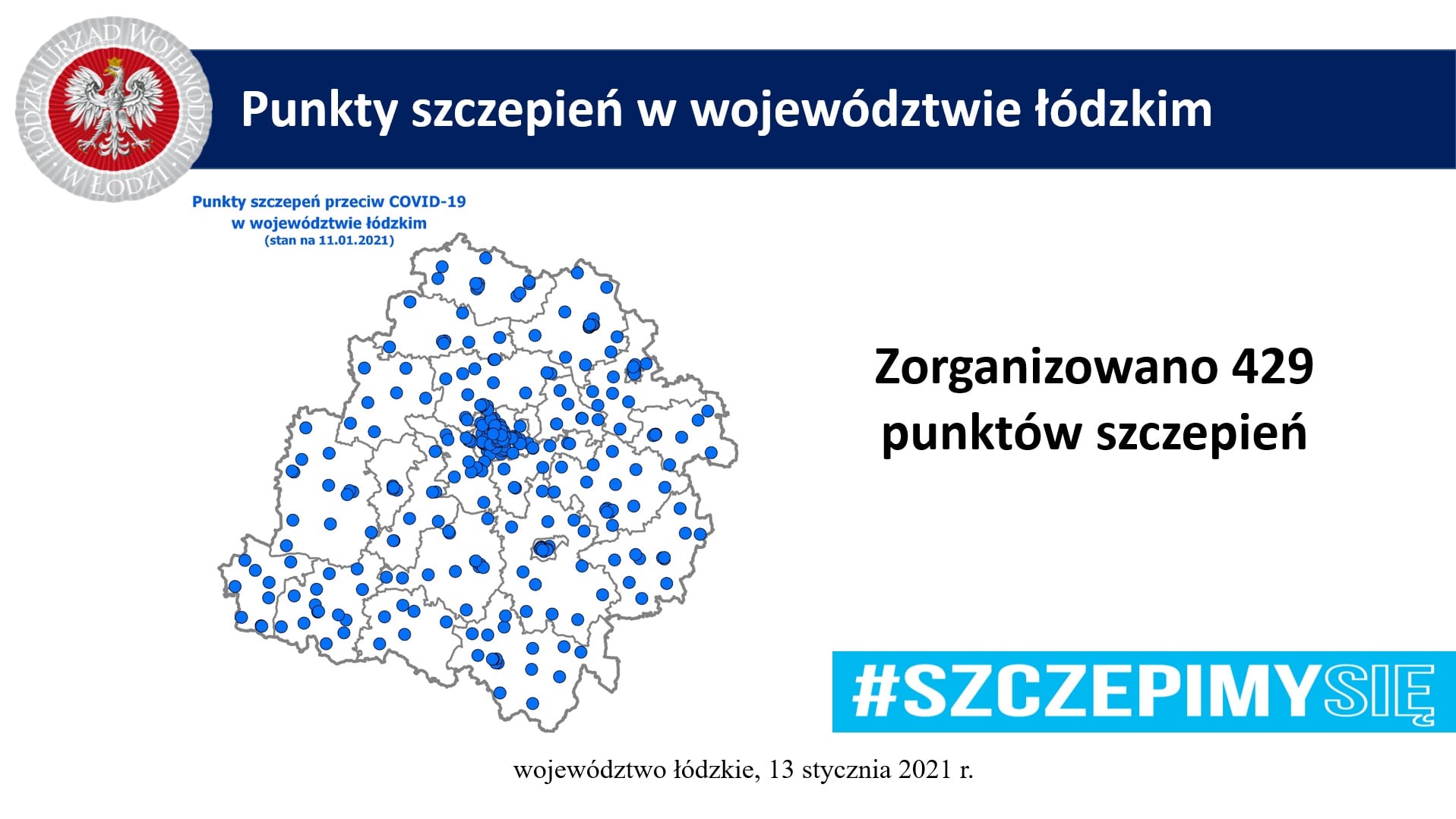 W województwie łódzkim zorganizowano 429 punktów szczepień.