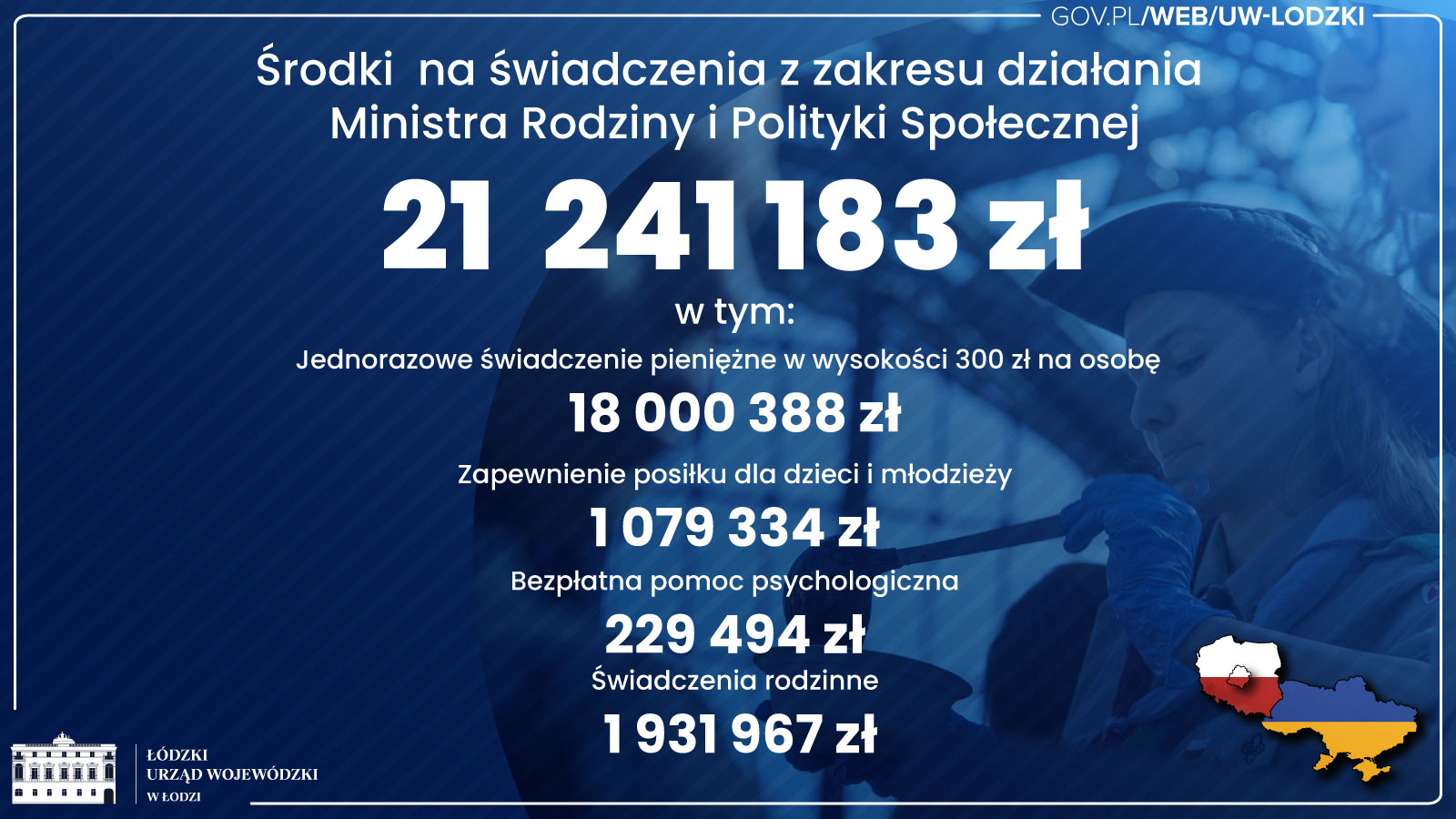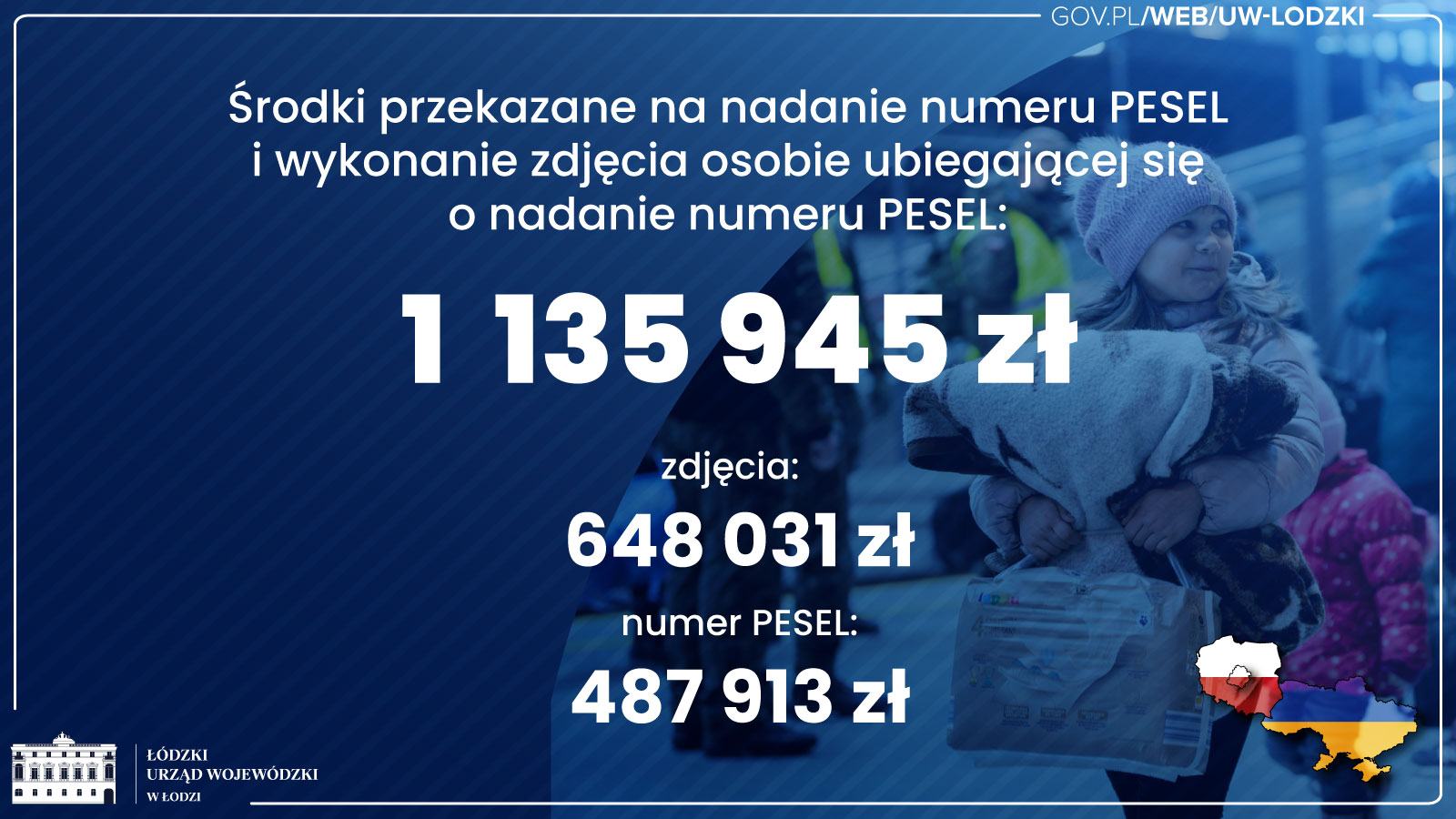 Blisko 70 mln zł trafiło do samorządów z województwa łódzkiego na rzecz pomocy obywatelom Ukrainy dotkniętym konfliktem zbrojnym. Samorządy w całej Polsce otrzymały na ten cel miliard złotych. Wsparcie zostało przeznaczone m.in.: na zakwaterowanie i wyżywienie uchodźców, na nadanie numeru PESEL, a także na świadczenia społeczne i rodzinne.