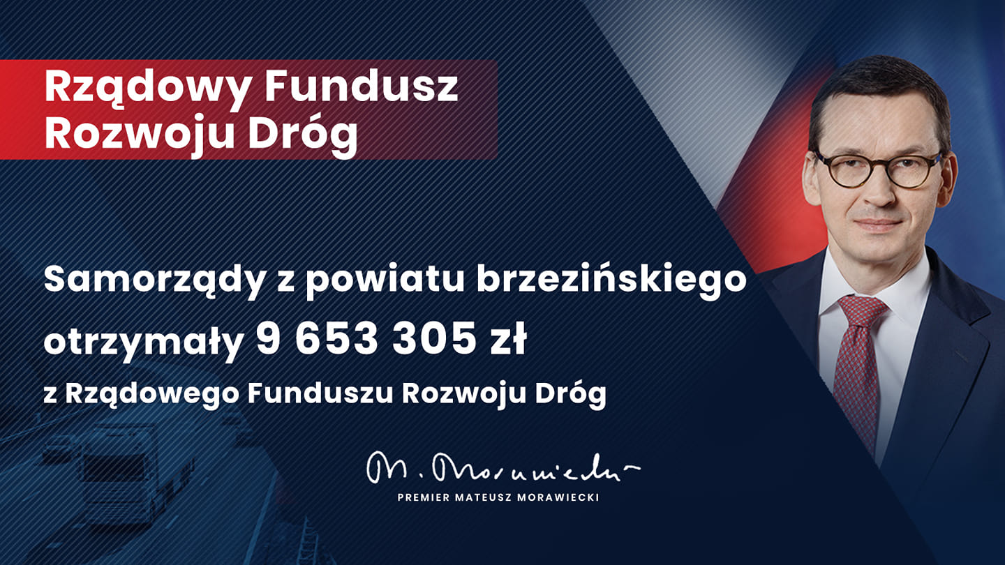 Powiaty: brzeziński i łódzki wschodni otrzymały dofinansowanie w ramach Rządowego Funduszu Rozwoju Dróg - ponad 10 mln zł na remont i budowę 9,5 km dróg lokalnych a łączna wartość dofinansowania to ponad 13,5 mln zł.
