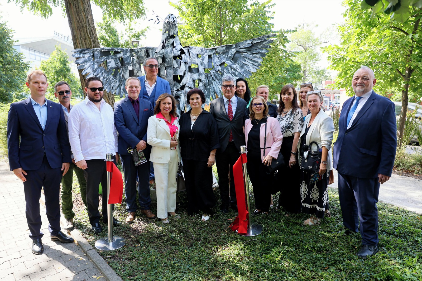 Rzeźba „Emisariusz globalnego pokoju” odsłonięta w Manufakturze