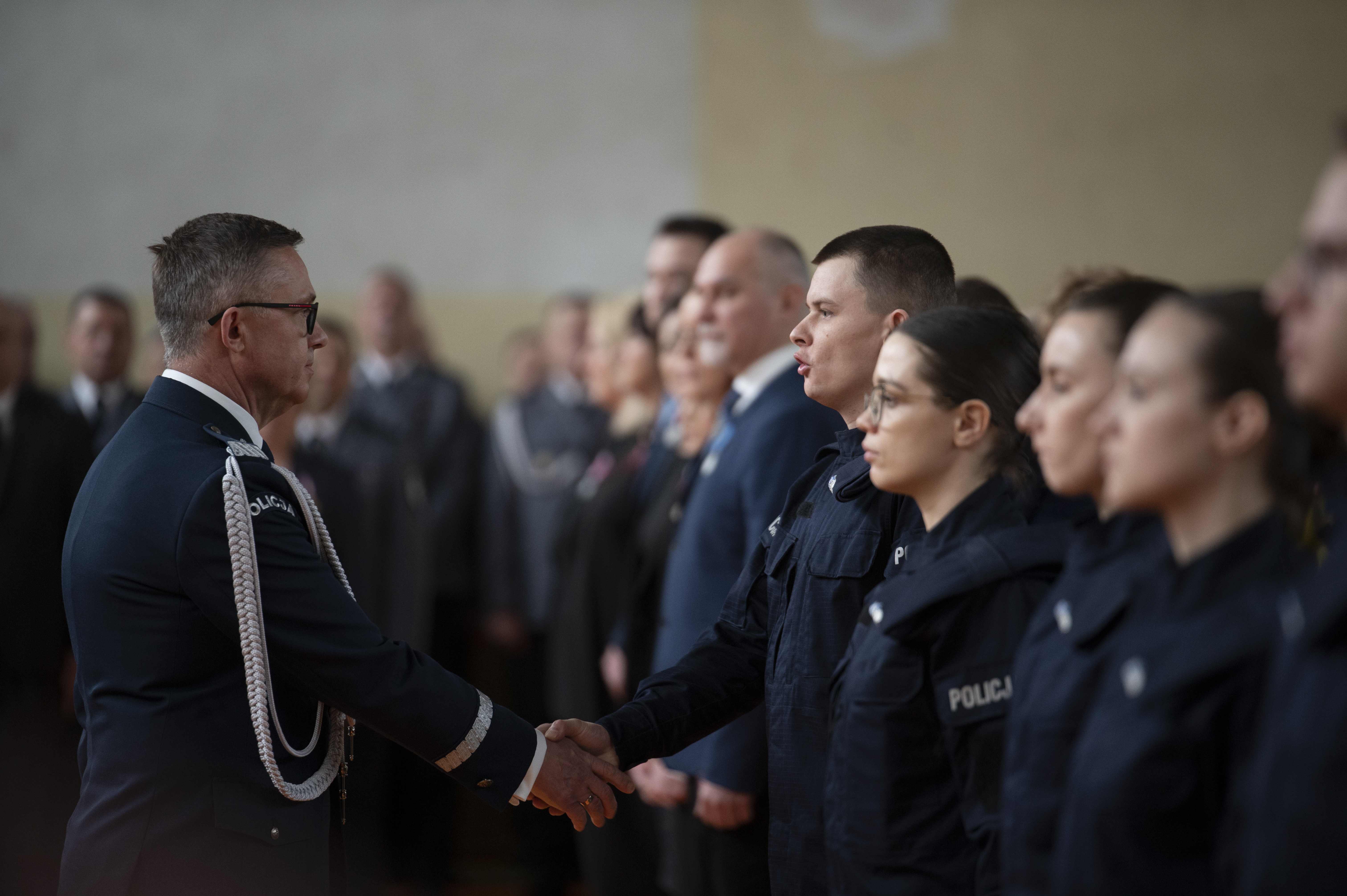 - Wasza służba reprezentuje powagę prawa. To w jaki sposób podejdziecie do swoich obowiązków będzie decydowało o tym, jak będzie ono postrzegane przez społeczeństwo. Jeśli swoją służbę będziecie wykonywać sumiennie i zgodnie z regulaminem, to przyczynicie się do tego, iż prawo w Polsce będzie przestrzegane, a zawód policjanta cieszył się coraz to większym szacunkiem