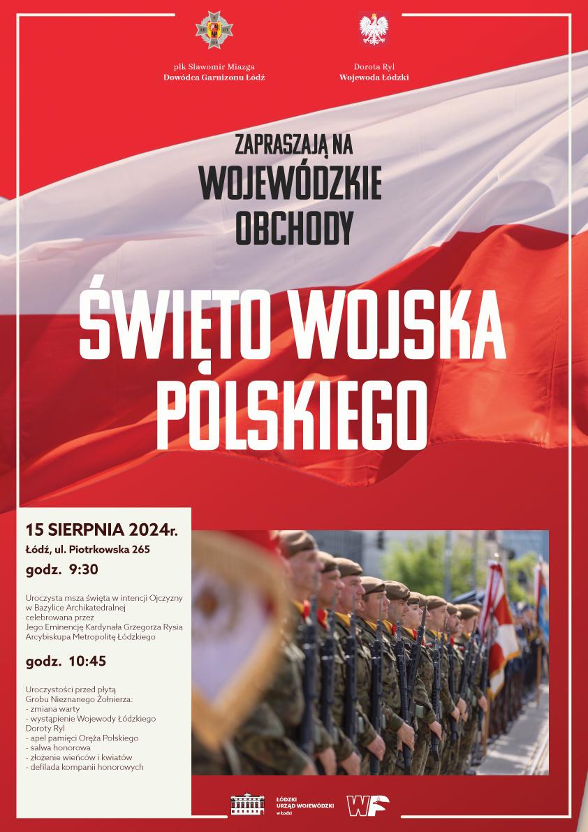 Wojewoda łódzki Dorota Ryl oraz dowódca garnizonu Łódź pułkownik Sławomir Miazga zapraszają mieszkańców województwa łódzkiego na obchody Święta Wojska Polskiego.