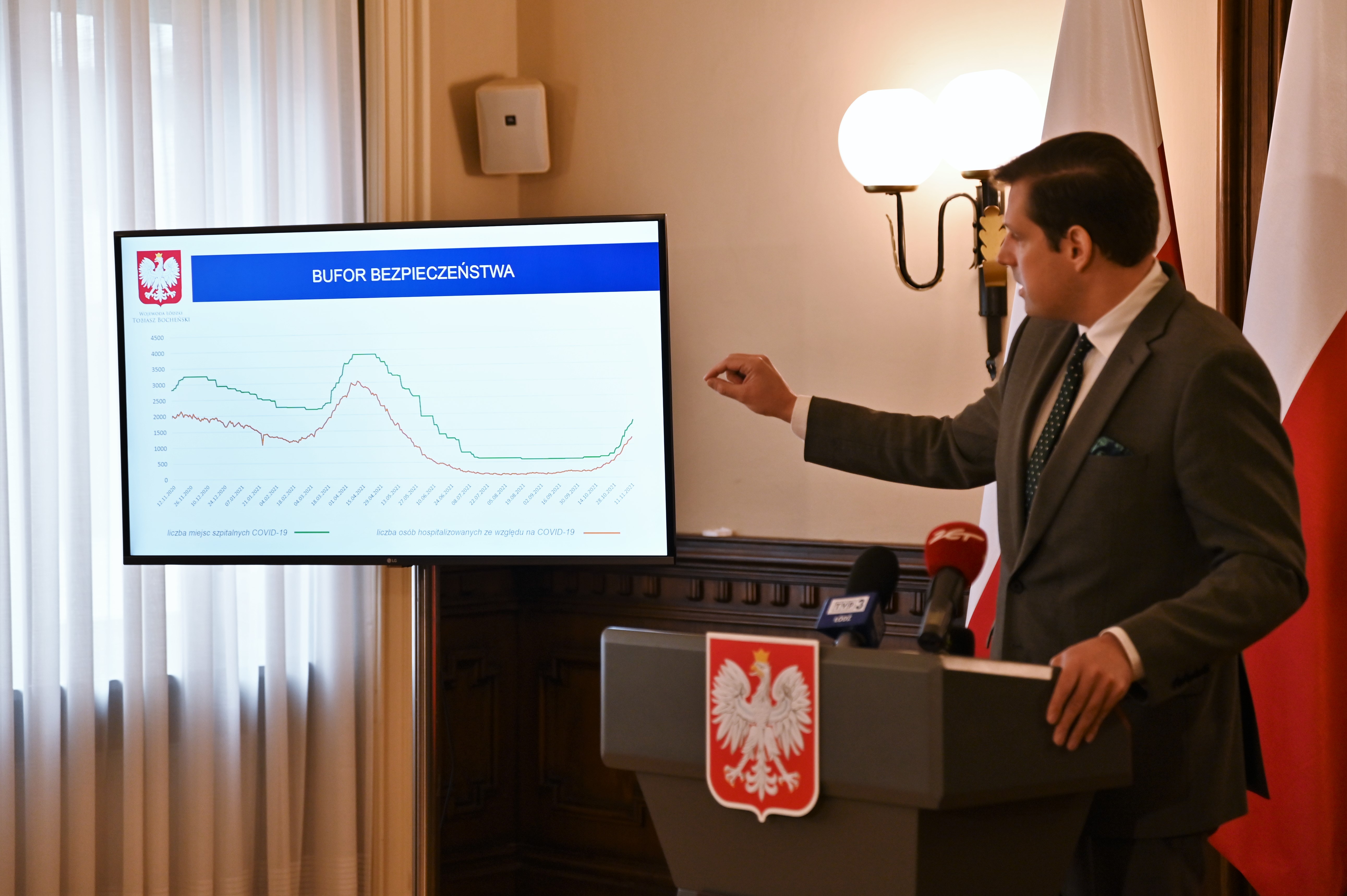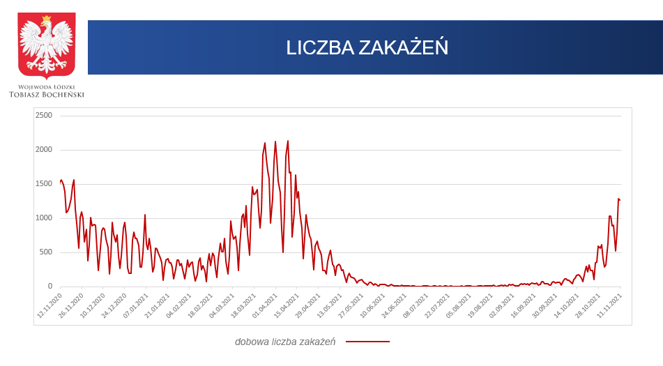 W Łódzkim Urzędzie Wojewódzkim odbyła się konferencja prasowa poświęcona sytuacji epidemicznej w regionie z udziałem wojewody łódzkiego Tobiasza Bocheńskiego, Komendanta Wojewódzkiego Policji w Łodzi Sławomira Litwina, Państwowego Wojewódzkiego Inspektora Sanitarnego Urszuli Sztuki-Polińskiej, Łódzkiego Kuratora Oświaty Waldemara Flajszera oraz pełnomocnika wojewody ds. szczepień Jolanty Kowalik-Gęsiak.
