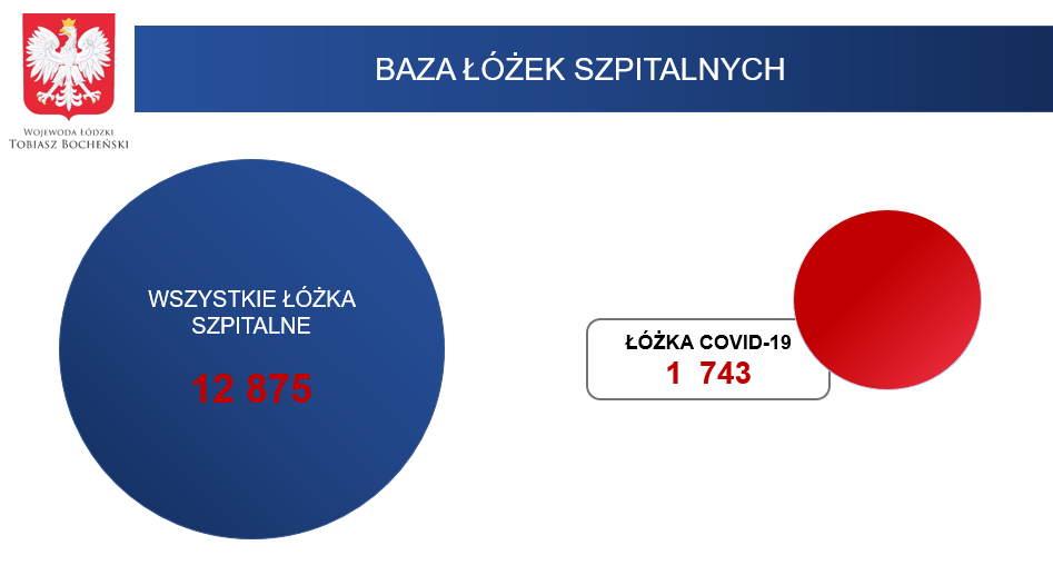 W tym momencie w województwie jest dostępnych 12 875 łóżek szpitalnych, z czego 1 743 przeznaczonych dla pacjentów z COVID-19 .