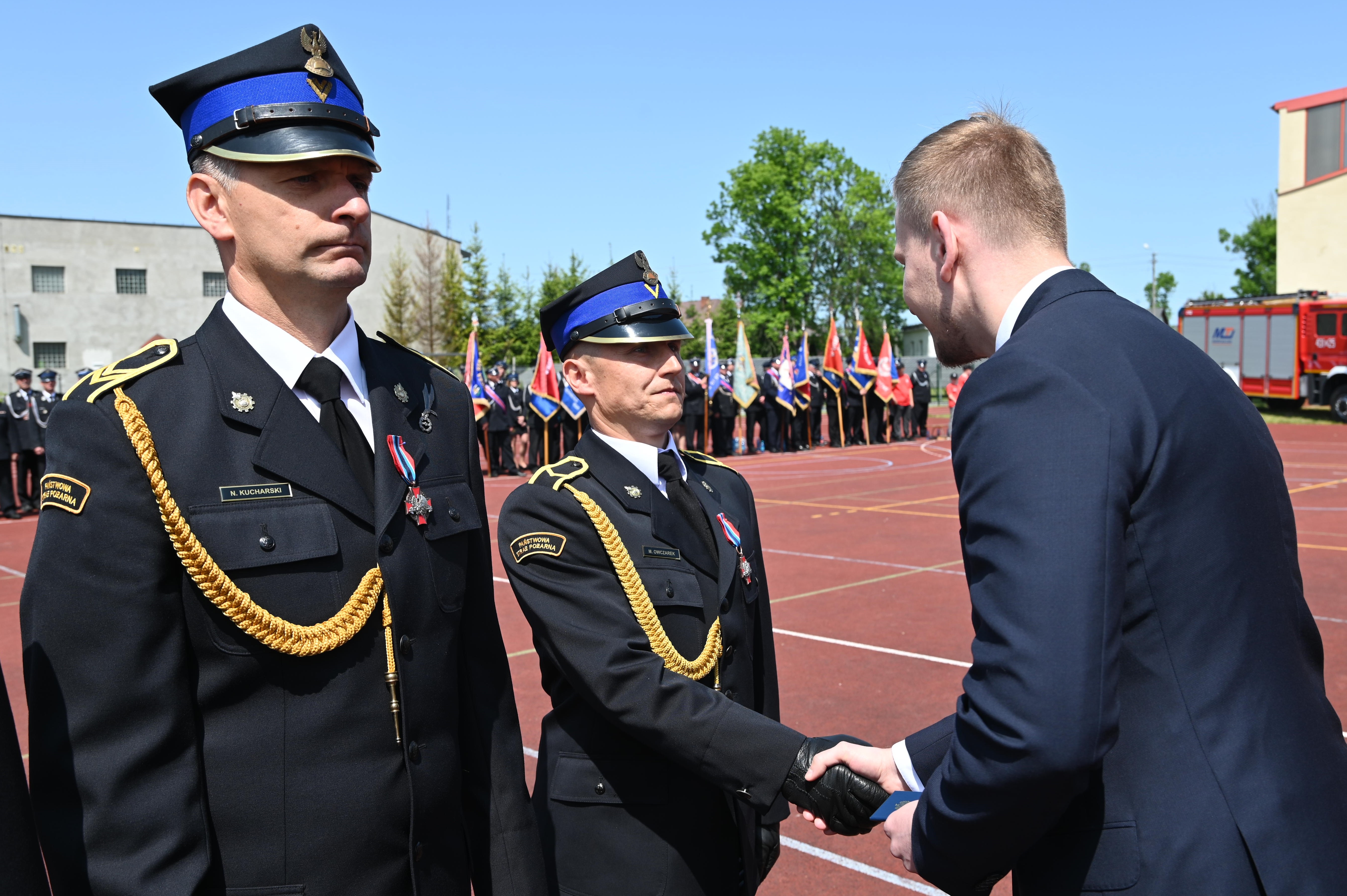 W trakcie trwania uroczystości, najlepsi strażacy i druhowie otrzymali odznaczenia państwowe. I wicewojewoda łódzki Marcin Buchali w imieniu Prezydenta RP Andrzeja Dudy wręczył najbardziej zaangażowanym w służbę strażakom Złote i Srebrne Krzyże Zasługi.