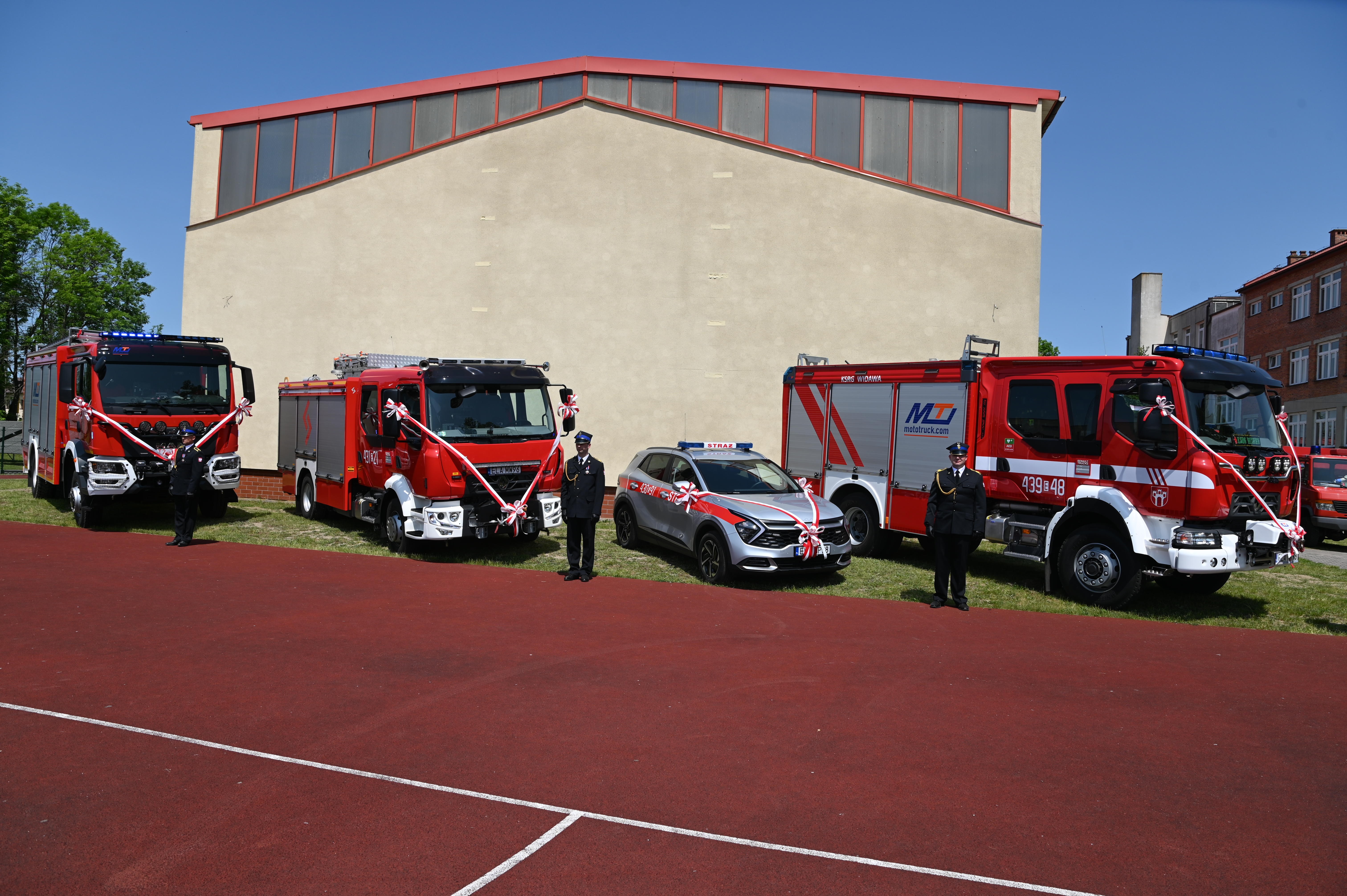 Podczas obchodów, lokalnym jednostkom przekazano też cztery nowe samochody strażackie. Jeden z nich – średni samochód ratowniczo-gaśniczy – o wartości 875.391,00 zł został w całości zakupiony ze środków wojewody łódzkiego.