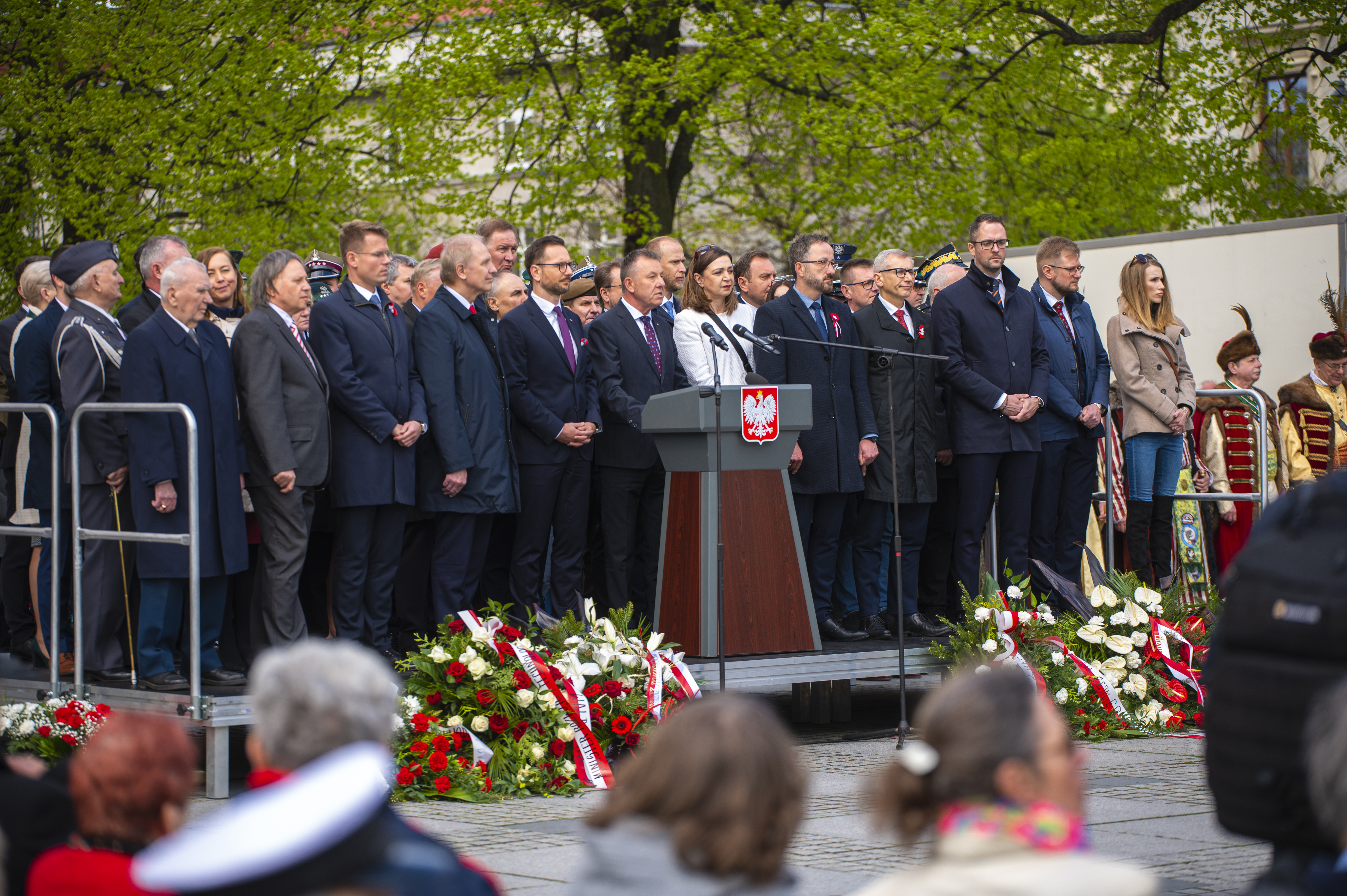 Łódzkie obchody Święta Narodowego Trzeciego Maja rozpoczęła msza święta, której przewodniczył arcybiskup Grzegorz Ryś. Następnie uroczystości tradycyjnie przeniosły się przed grób Nieznanego Żołnierza, gdzie nastąpiła uroczysta zmiana warty, przemówienie wojewody łódzkiego, apel pamięci, salwa honorowa, złożenie wieńców i kwiatów, a także defilada kompanii honorowych.