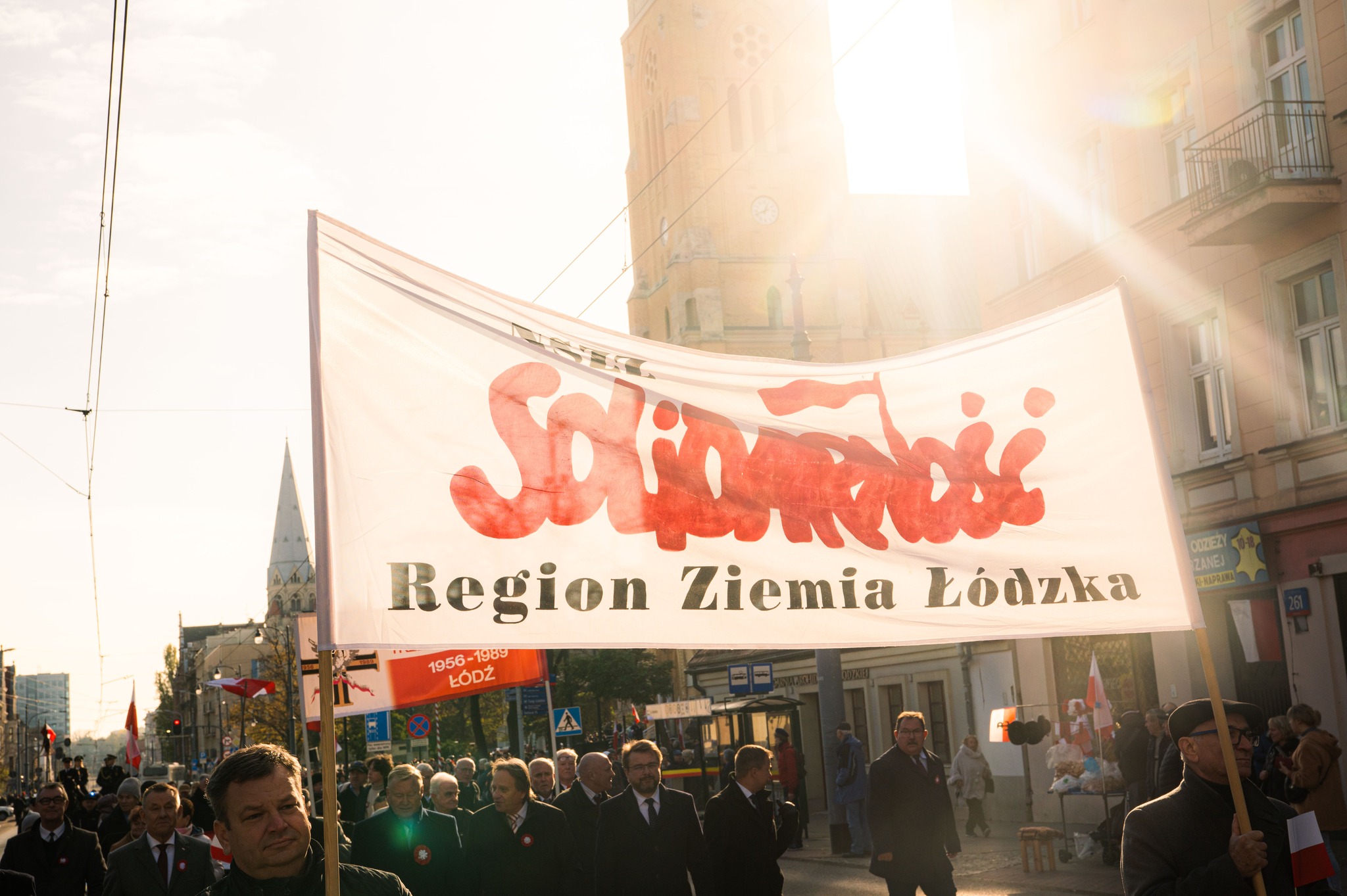 Zwieńczeniem dzisiejszej uroczystości był wspólny marsz z NSZZ "Solidarność" Ziemi Łódzkiej ulicą Piotrkowską, pod pomnik Józefa Piłsudskiego, gdzie oddano hołd jednemu z ojców niepodległości.