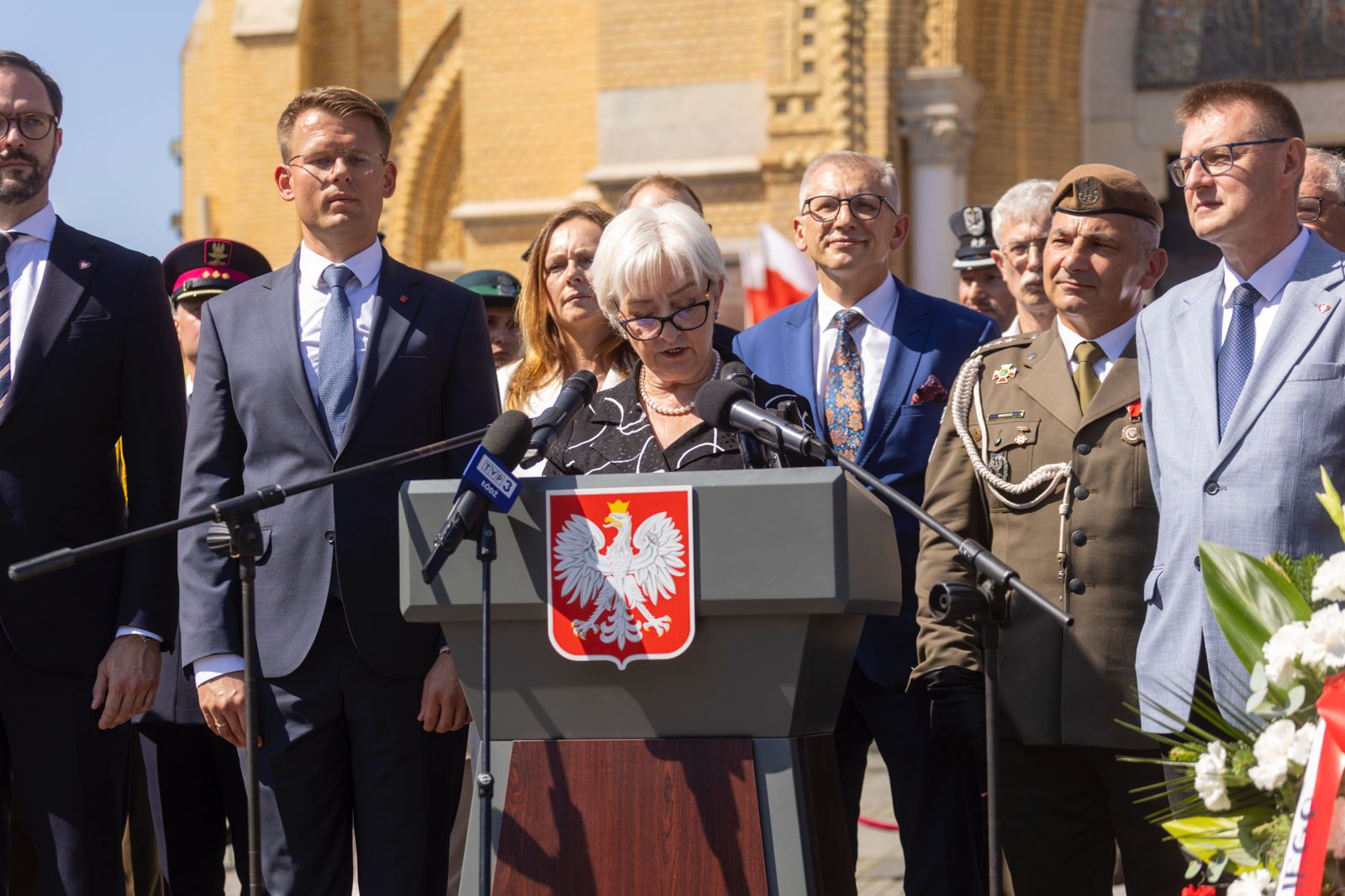 Dalsza część obchodów odbyła się na placu Jana Pawła II. Na maszt podniesiono biało-czerwoną flagę, a następnie zebrani wspólnie odśpiewali hymn państwowy. Głos zabrała wojewoda Dorota Ryl: - 15 sierpnia 1920 roku nie tylko wygraliśmy bitwę. Wygraliśmy wojnę o Polskę! To wtedy na polach pod Radzyminem i Ossowem, nad Wkrą i nad Wieprzem ważył się byt całego narodu. Ale wygraliśmy. Pokonaliśmy bolszewickiego najeźdźcę, obroniliśmy młodą polską niepodległość i zatrzymaliśmy barbarzyński pochód komunizmu na Europę. Militarne i polityczne znaczenie Bitwy Warszawskiej oddziaływało daleko poza nasze granice. Nie byłoby tego zwycięstwa bez odwagi, niezłomności i poświęcenia polskiego żołnierza – mówiła do zebranych wojewoda D. Ryl.