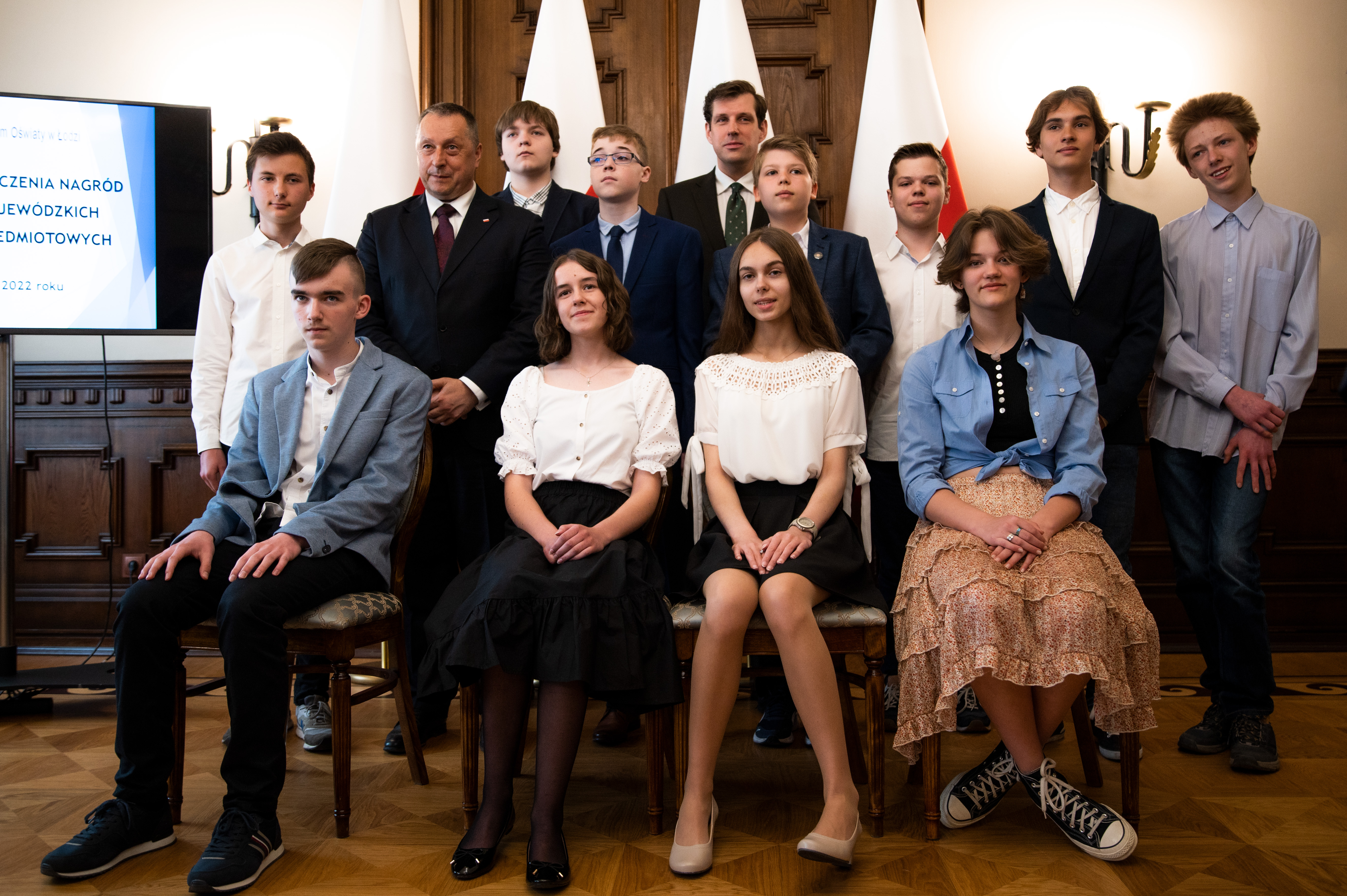 Wojewoda łódzki przyjął dziś w Łódzkim Urzędzie Wojewódzkim 11 najzdolniejszych naukowców młodego pokolenia z naszego województwa. Razem z łódzkim kuratorem oświaty Waldemarem Flajszerem wręczyli laureatom Wojewódzkich Konkursów Przedmiotowych prezenty, stanowiące symboliczną formę podziękowania za wybitne osiagnięcia w nauce.