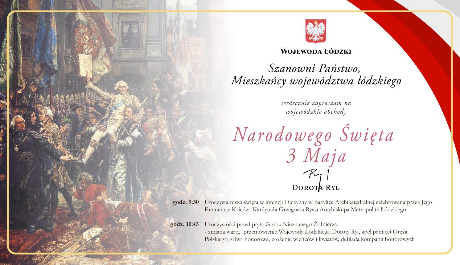 Wojewoda Łódzki Dorota Ryl zaprasza Mieszkańców województwa łódzkiego na obchody Narodowego Święta 3 Maja