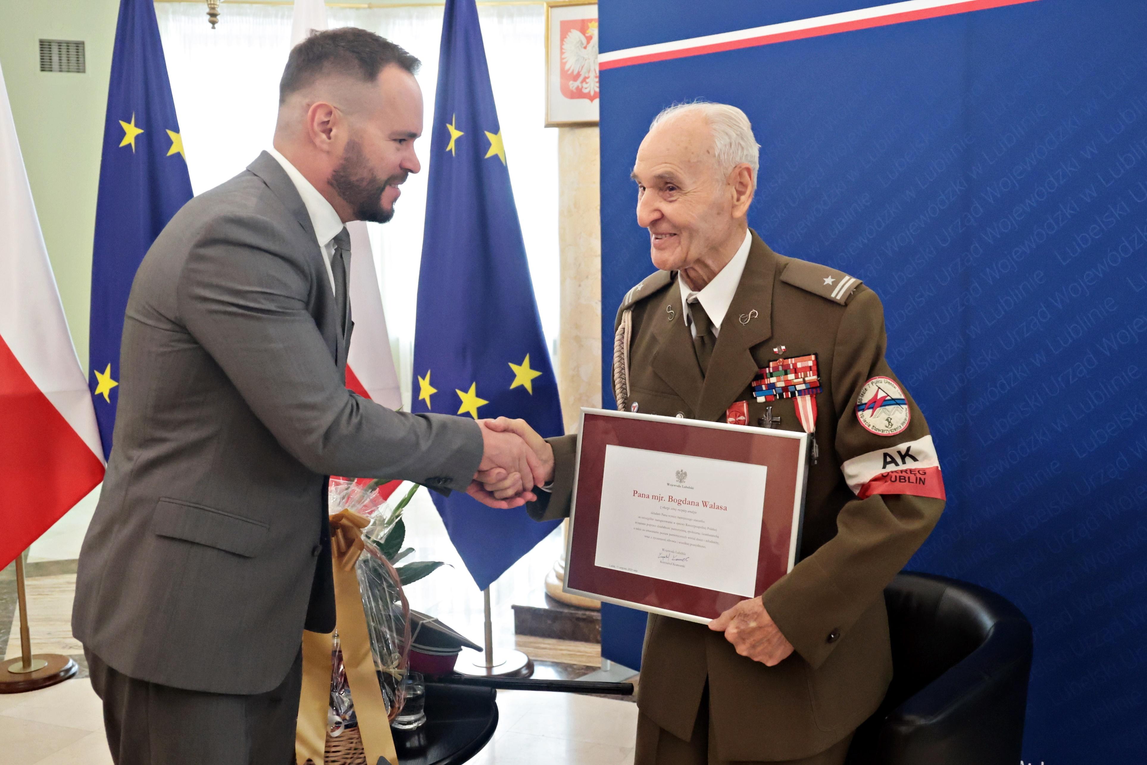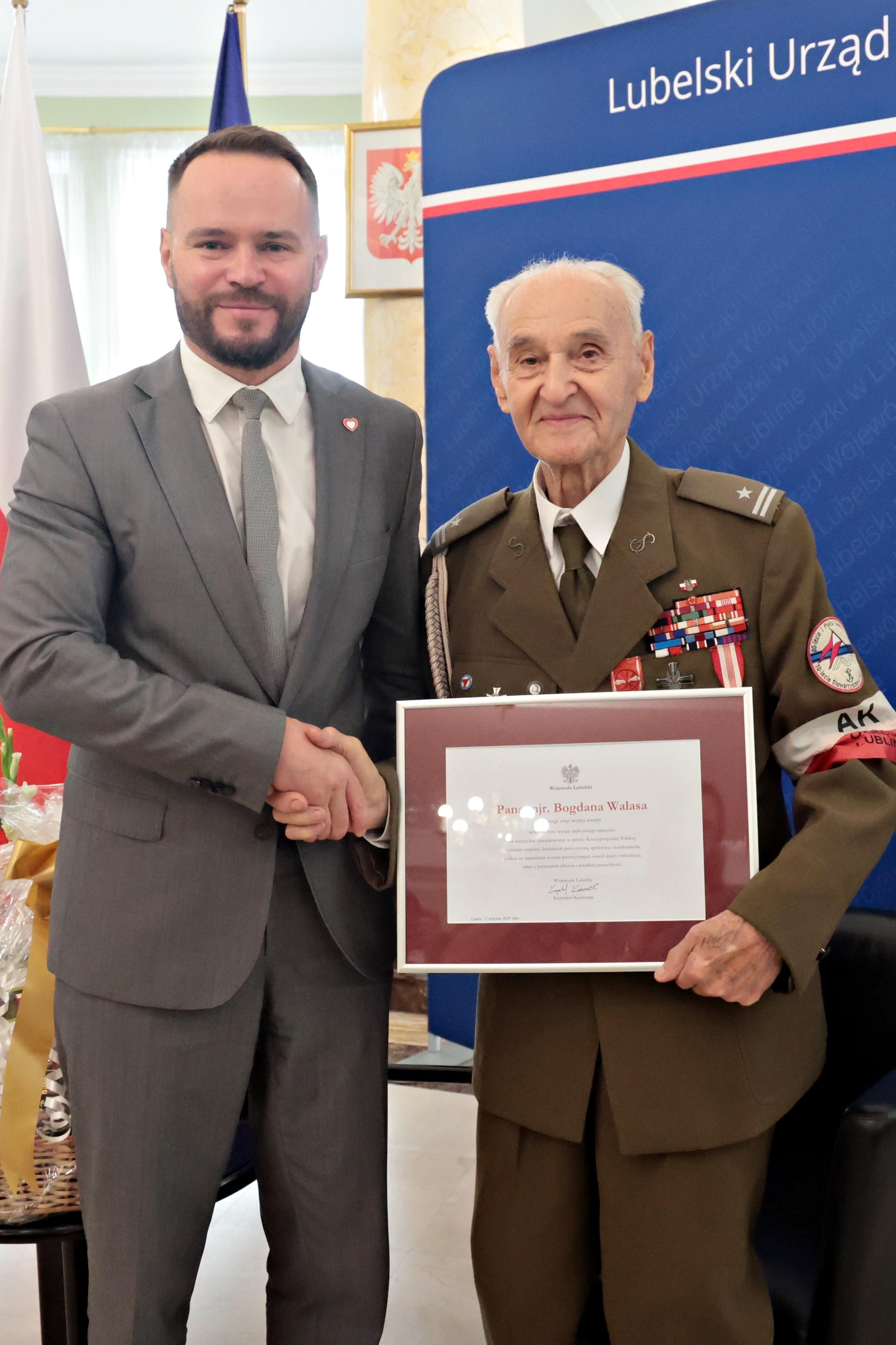 Major Bogdan Walas, żołnierz Armii Krajowej, a po wojnie członek wielu organizacji i środowisk kombatanckich, obchodzi 100. urodziny. Uroczystości urodzinowe z udziałem solenizanta odbyły się w czwartek Lubelskim Urzędzie Wojewódzkim.