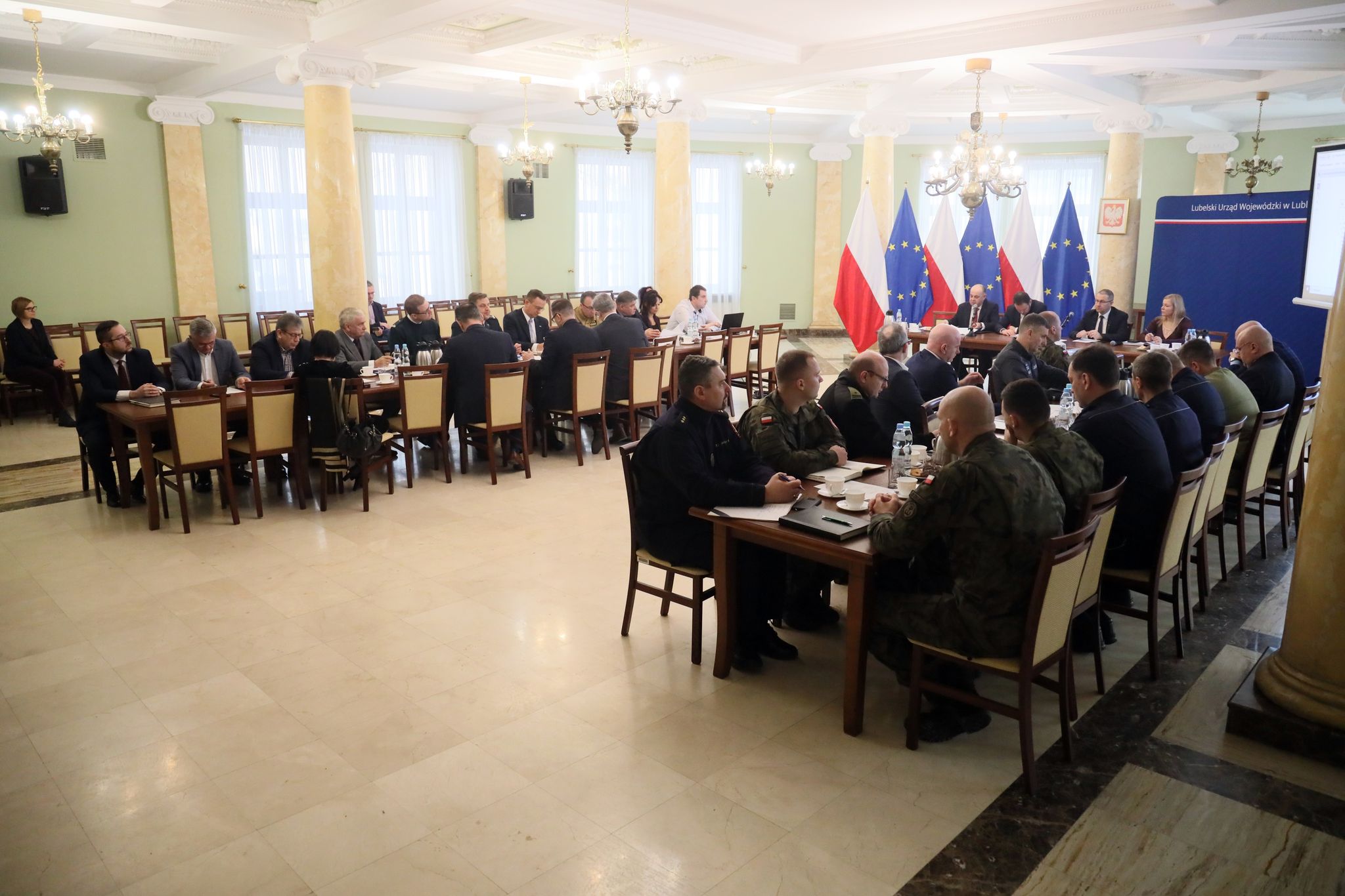 To pierwsze posiedzenie Wojewódzkiego Zespołu Zarządzania Kryzysowego, któremu przewodniczył wojewoda lubelski Krzysztof Komorski w swojej niedawno rozpoczętej kadencji.