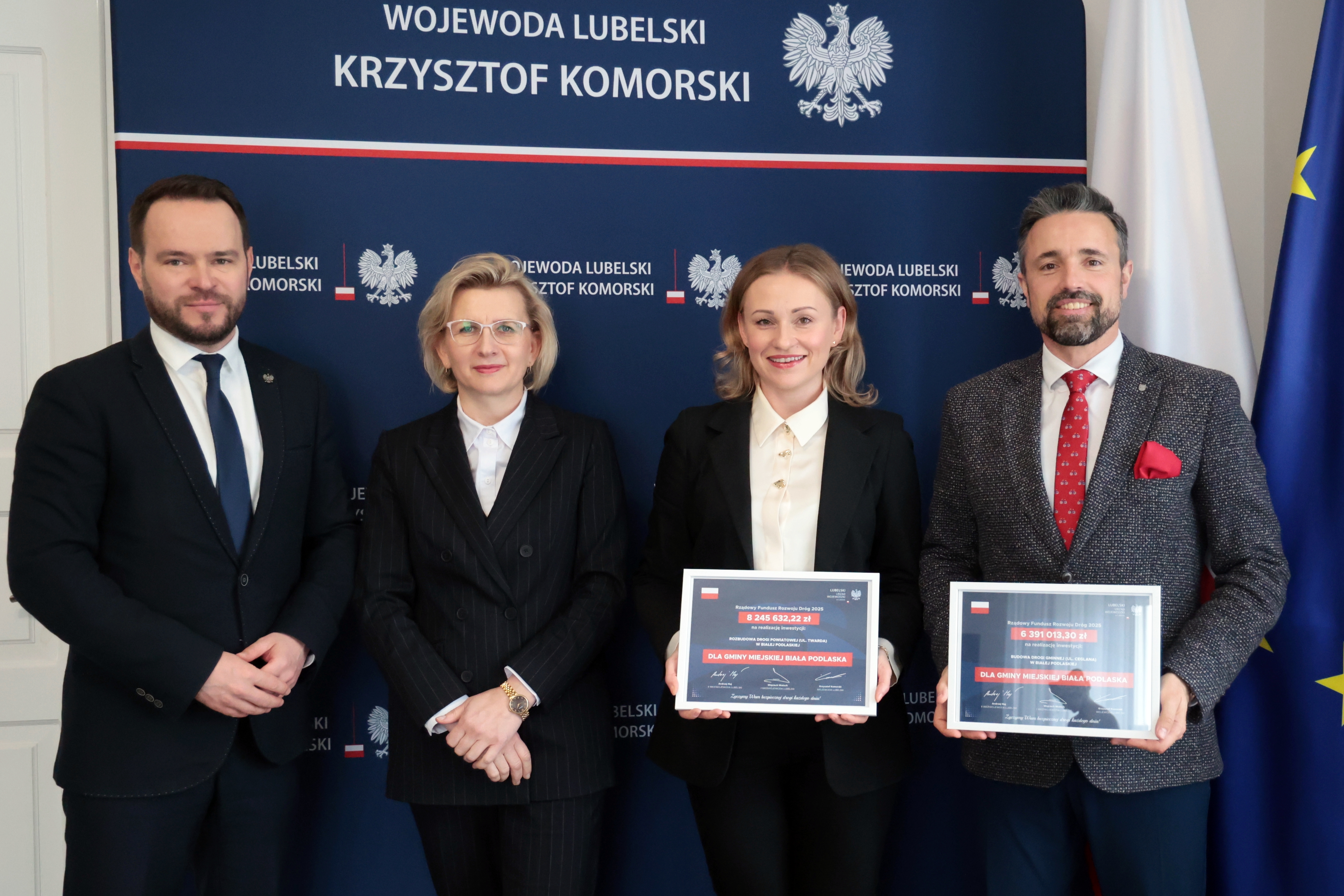 Blisko 16 mln dofinansowania z Rządowego Funduszu Rozwoju Dróg trafi do miasta Biała Podlaska. Umowę w tej sprawie w czwartek podpisali wojewoda lubelski Krzysztof Komorski oraz prezydent Białej Podlaskiej Michał Litwiniuk.