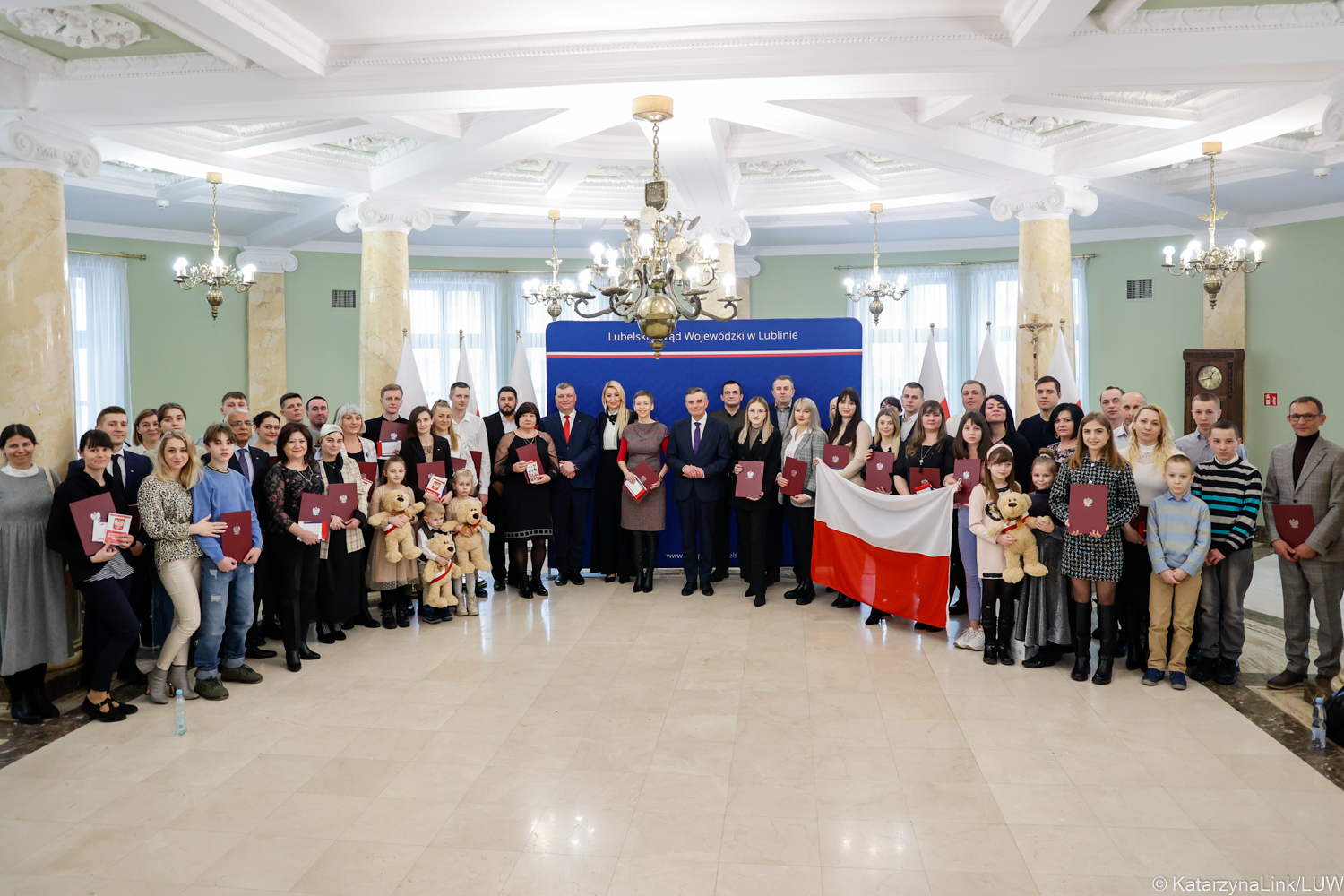 Wojewoda lubelski Lech Sprawka i wicewojewoda Robert Gmitruczuk wręczyli akty nadania obywatelstwa polskiego osobom z Ukrainy, Białorusi, Wielkiej Brytanii, Jordanii i Rosji. Nowi, pełnoprawni obywatele Polski otrzymali też egzemplarze Konstytucji RP.