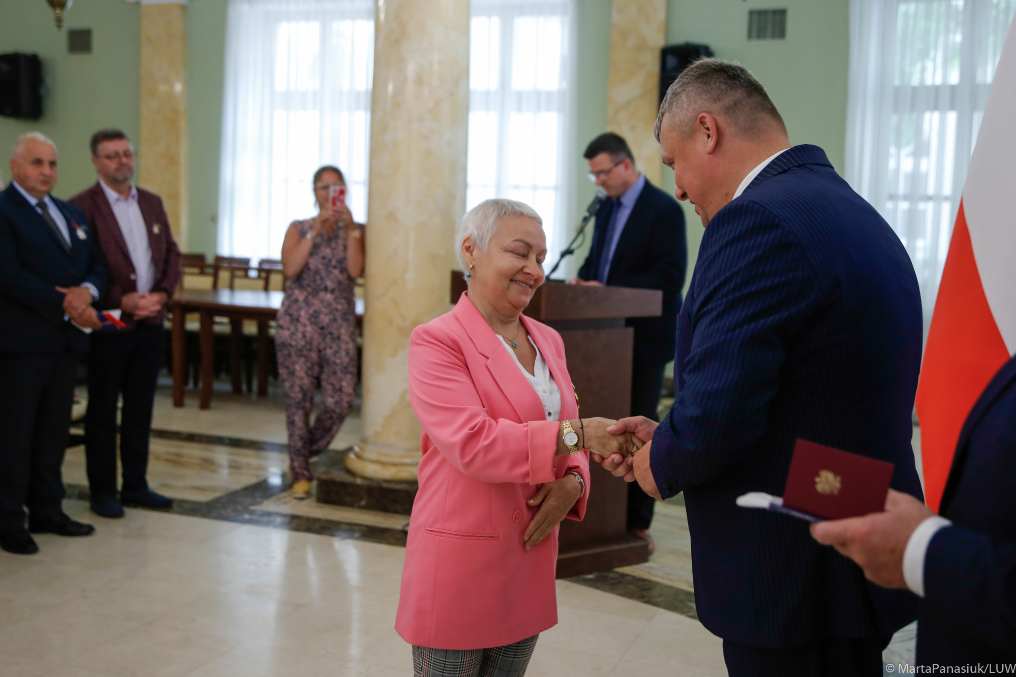 Wicewojewoda Robert Gmitruczuk, w asyście posła na Sejm RP Krzysztofa Głuchowskiego dokonał aktu dekoracji odznaczeniami państwowymi, nadanymi przez Prezydenta RP. Wśród wyróżnionych byli: działaczka w strukturach NSZZ "Solidarność", wójt gminy Niedrzwica Duża, członek zarządu powiatu łęczyńskiego, pracownicy Urzędu Gminy Komarów Osada, Starostwa Powiatowego w Lublinie i Wojewódzkiego Szpitala Specjalistycznego w Białej Podlaskiej. Pośmiertnie uhonorowano uczestnika wojny obronnej 1939 r. - żołnierza Batalionów Chłopskich i żołnierza Armii Krajowej.