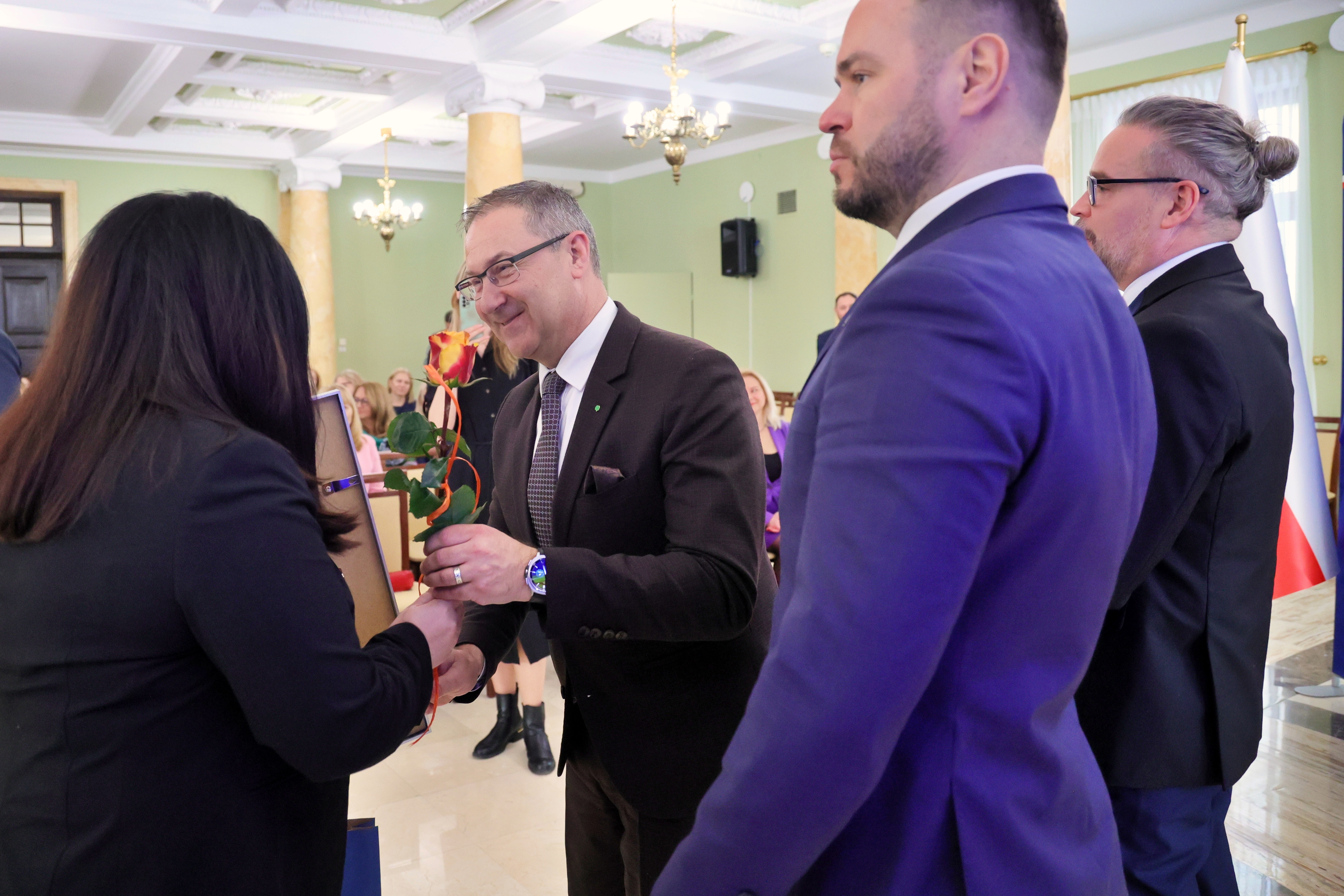 Dziękuję za wyzwania, których się podejmujecie, za Waszą konsekwencję, siłę, inicjatywy oraz za to, że tak skutecznie pokazujecie nam - mężczyznom - że przestrzeń, która w naszej percepcji często bywa „polem bitwy”, może być miejscem bardziej cywilizowanym, wypełnionym dobrą, kobiecą energią. Jestem pełen podziwu dla Was - liderek społecznych, liderek w swoich obszarach. Dzięki Waszej sile, a siła jest kobietą, można przenosić góry
