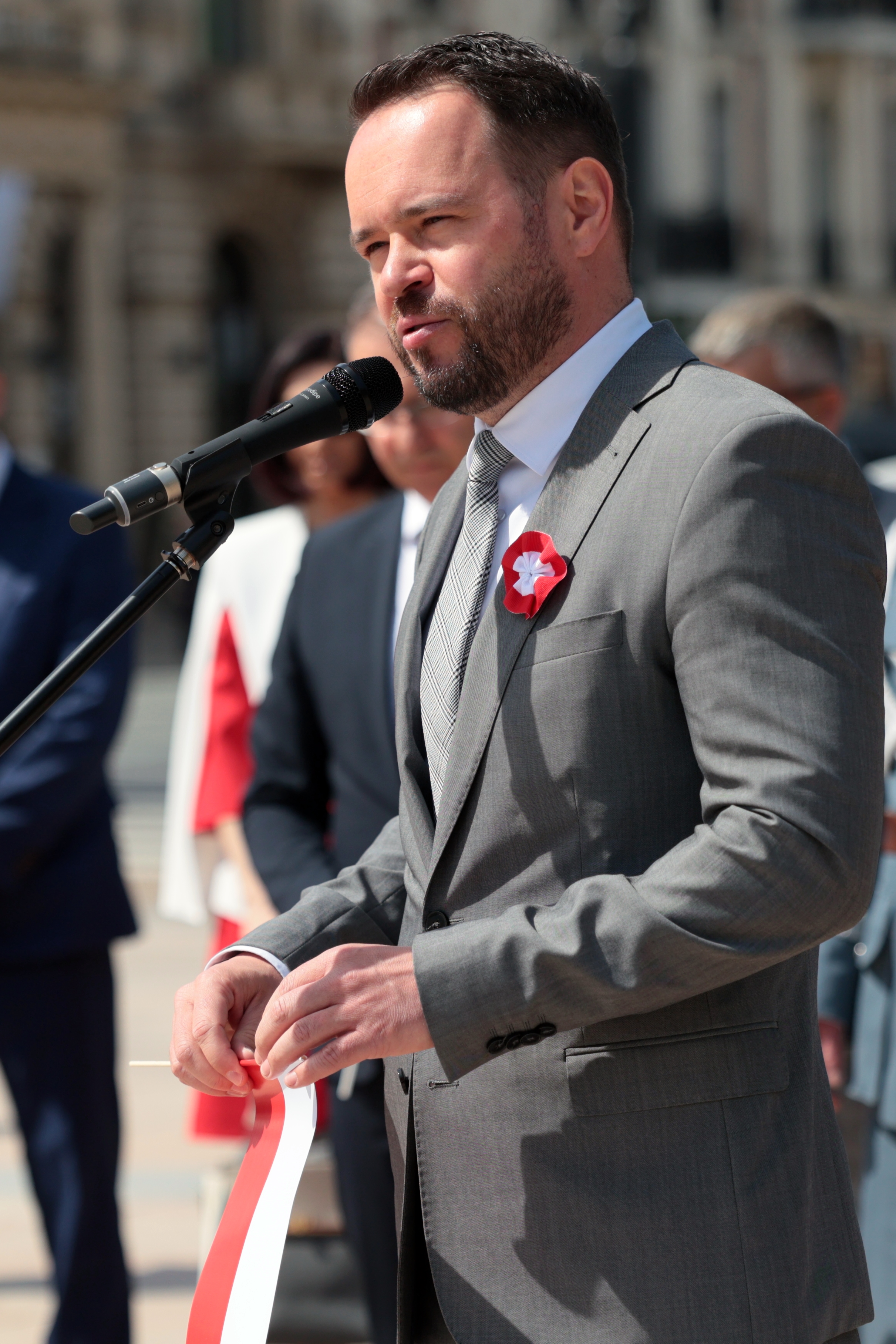 Dziś gromadzimy się, aby uczcić naszą ukochaną, biało-czerwoną flagę. Zawsze w ważnych momentach zbieramy się w jej majestacie. Patrzymy na te barwy. Z jednej strony biel: czystość, dobre intencje, niewinność. Z drugiej czerwień: walka, odwaga, krew – także tych, którzy poświęcili się w obronie naszej ojczyzny i dzięki nim dziś możemy żyć w wolnym i niepodległym kraju