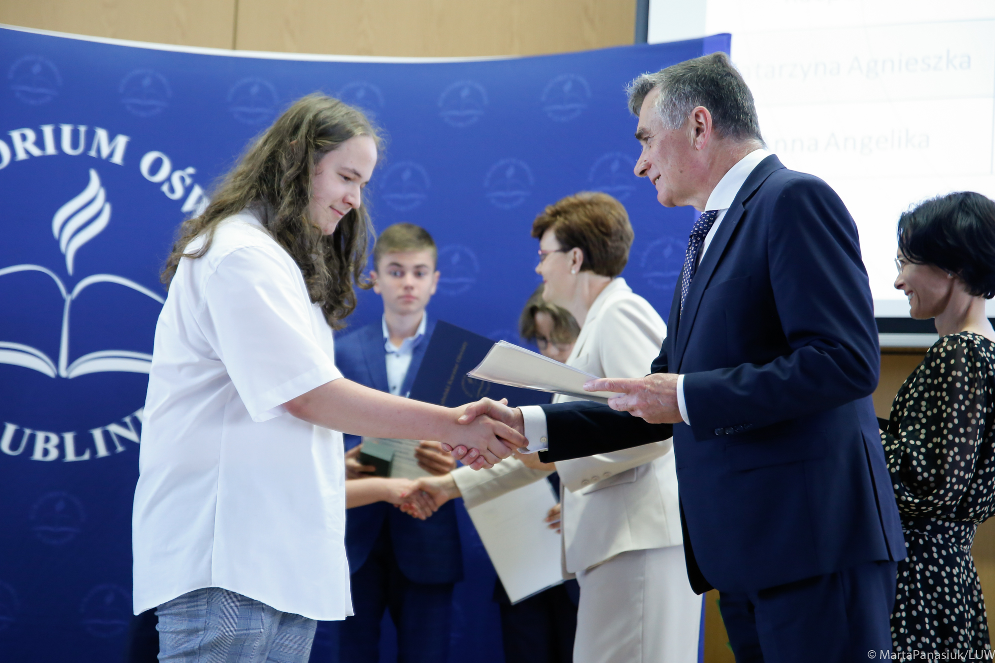 Wojewoda lubelski Lech Sprawka wziął udział w podsumowaniu konkursów przedmiotowych organizowanych w roku szkolnym 2022/2023 dla uczniów szkół podstawowych województwa lubelskiego. Podczas gali, zorganizowanej w Katolickim Uniwersytecie Lubelskim w Lublinie, wojewoda wręczył dyplomy i nagrody wielokrotnym laureatom konkursów i szkołom podstawowym z najwyższą liczbą laureatów.