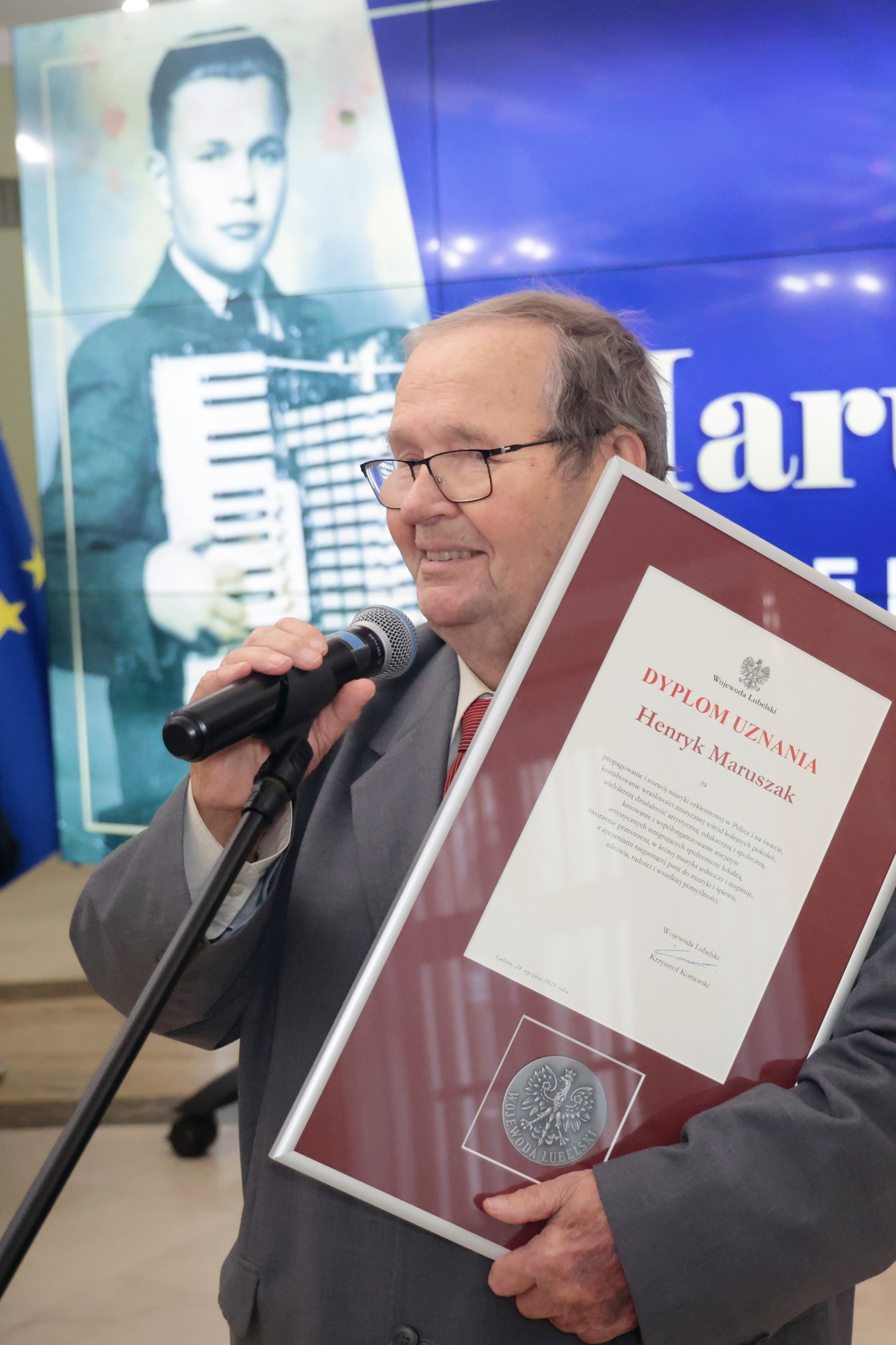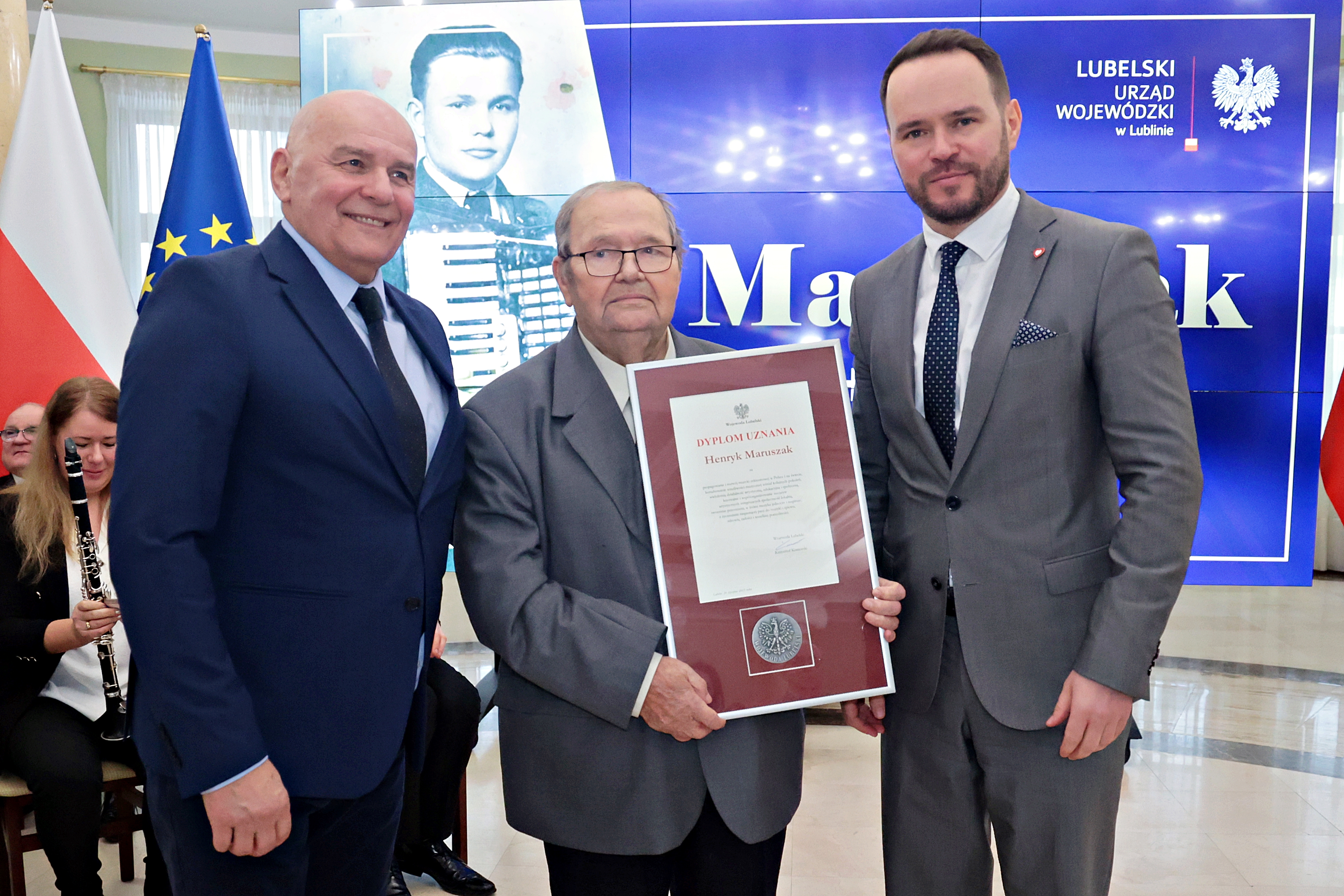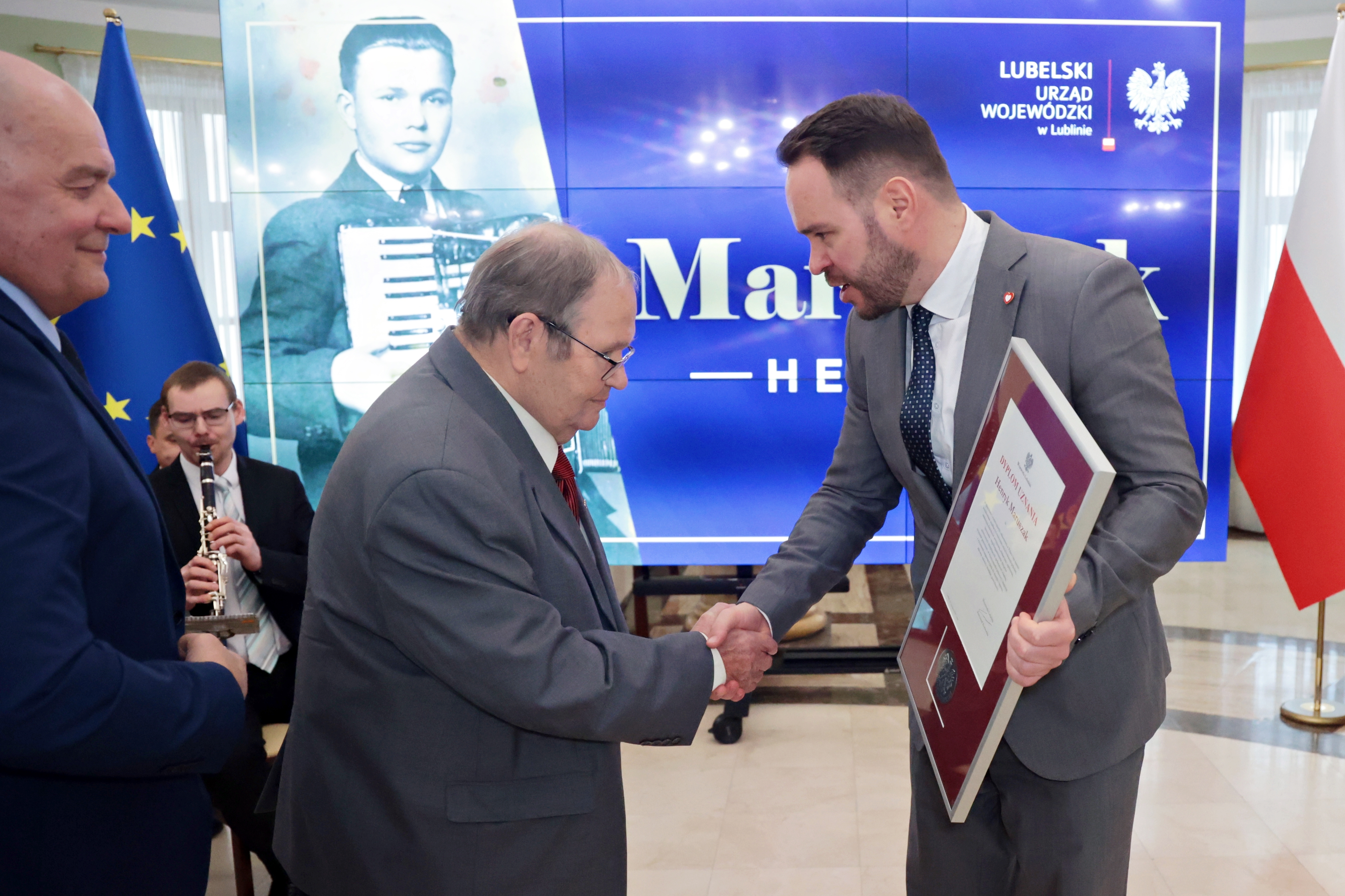 Wojewoda lubelski Krzysztof Komorski wręczył Panu Henrykowi Maruszakowi dyplom uznania.
