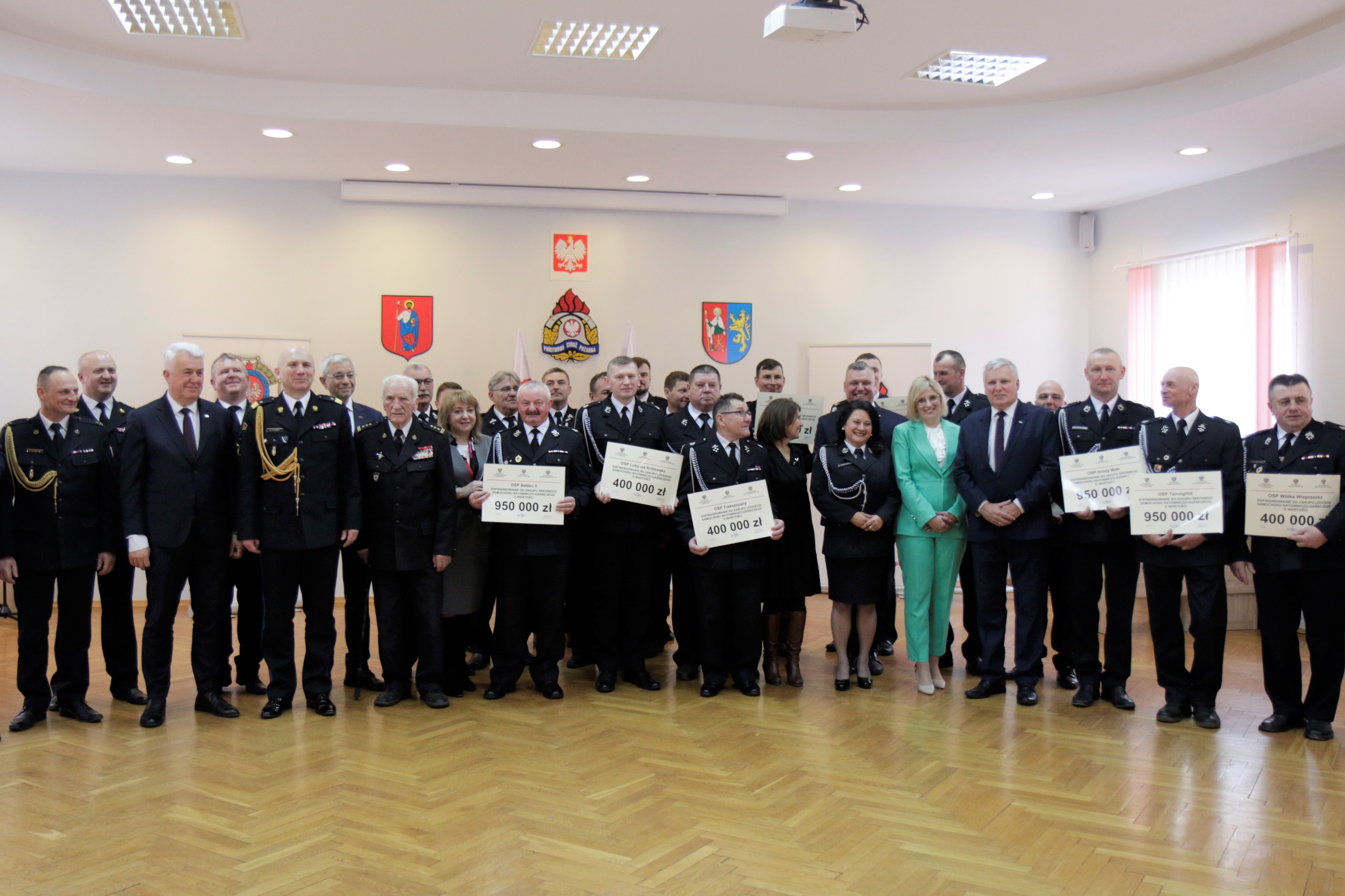 Uroczyste wręczenie promes potwierdzających zapewnienie środków finansowych przeznaczonych na zakup samochodów ratowniczo-gaśniczych w 2023 roku dla jednostek Ochotniczych Straży Pożarnych na terenie województwa lubelskiego odbyło się w Janowie Lubelskim, Chełmie, Lubartowie i Zamościu. W wydarzeniu zorganizowanym w Komendzie Miejskiej Państwowej Straży Pożarnej w Zamościu wziął udział wicewojewoda lubelski Robert Gmitruczuk.