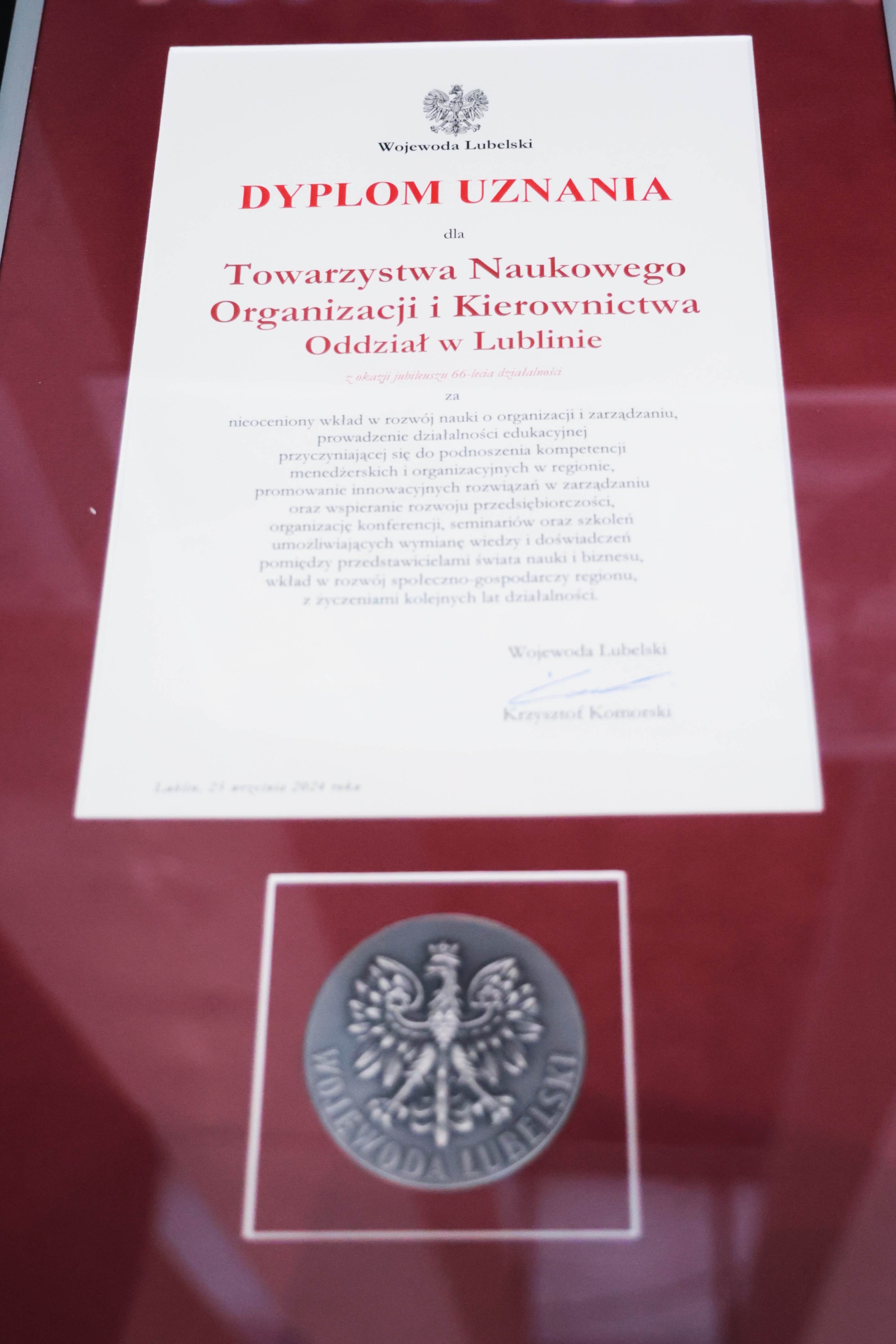 Wśród wyróżnionych znalazła się prof. dr hab. Ewa Bojar, Prezes Towarzystwa Naukowego Organizacji i Kierownictwa Oddział w Lublinie, która otrzymała Dyplom Uznania za m.in. „wybitne osiągnięcia naukowe w dziedzinie zarządzania, wieloletnie zaangażowanie w rozwój TNOiK, wkład w integrację środowisk naukowych i biznesowych, zwiększenie efektywności współpracy między środowiskiem naukowym a gospodarczym, inspirowanie i wspieranie młodzieży akademickiej w badaniach naukowych i rozwoju kariery zawodowej, działania na rzecz podnoszenia poziomu edukacji menedżerskiej oraz popularyzowania innowacyjnych metod zarządzania”.