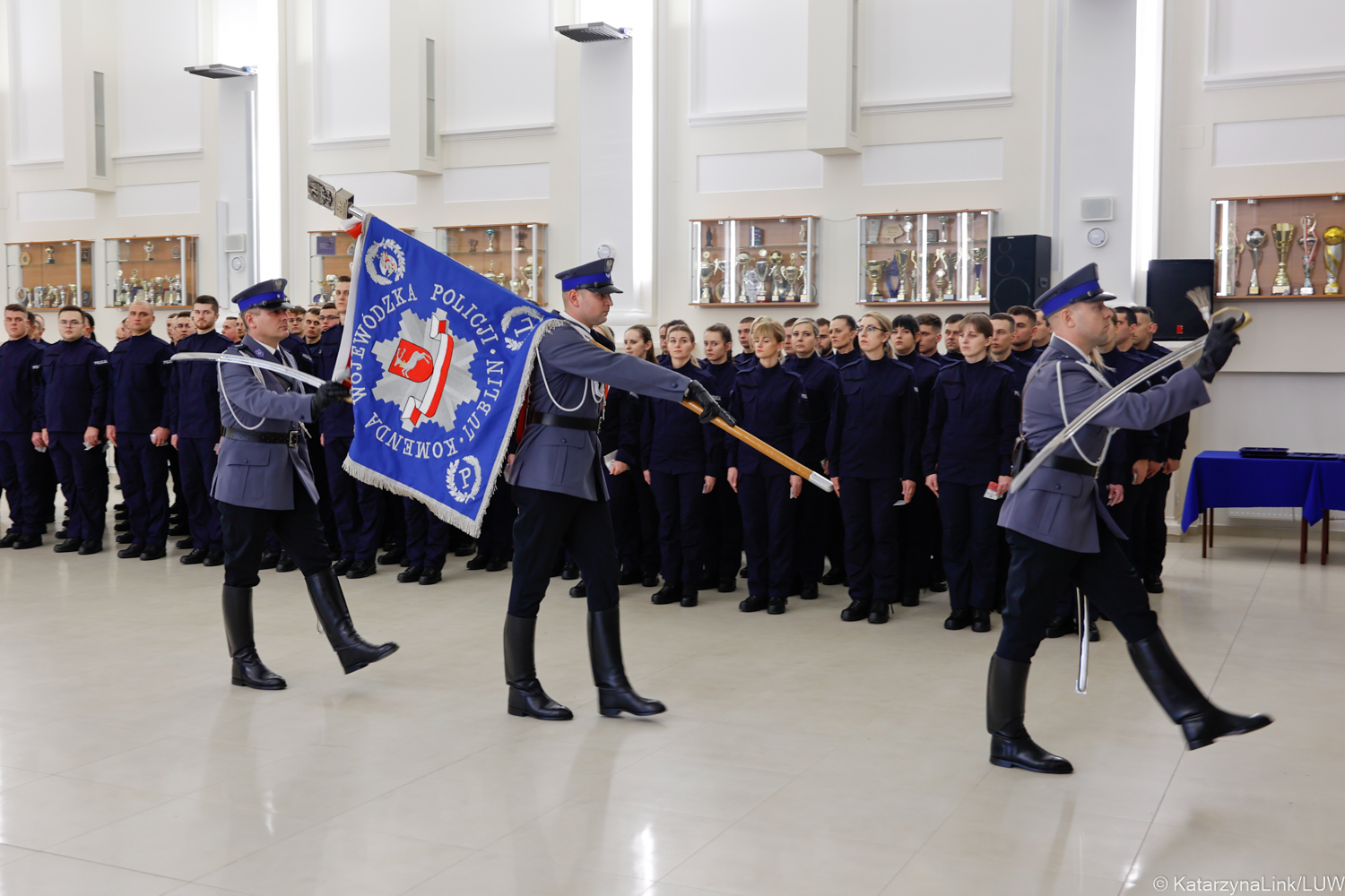 Nowo przyjęci policjanci garnizonu lubelskiego złożyli ślubowanie. Podczas uroczystej zbiórki stróże prawa odebrali legitymacje służbowe i dokumenty „Zasady etyki zawodowej policjanta”. Ceremonia odbyła się w siedzibie Komendy Wojewódzkiej Policji w Lublinie.