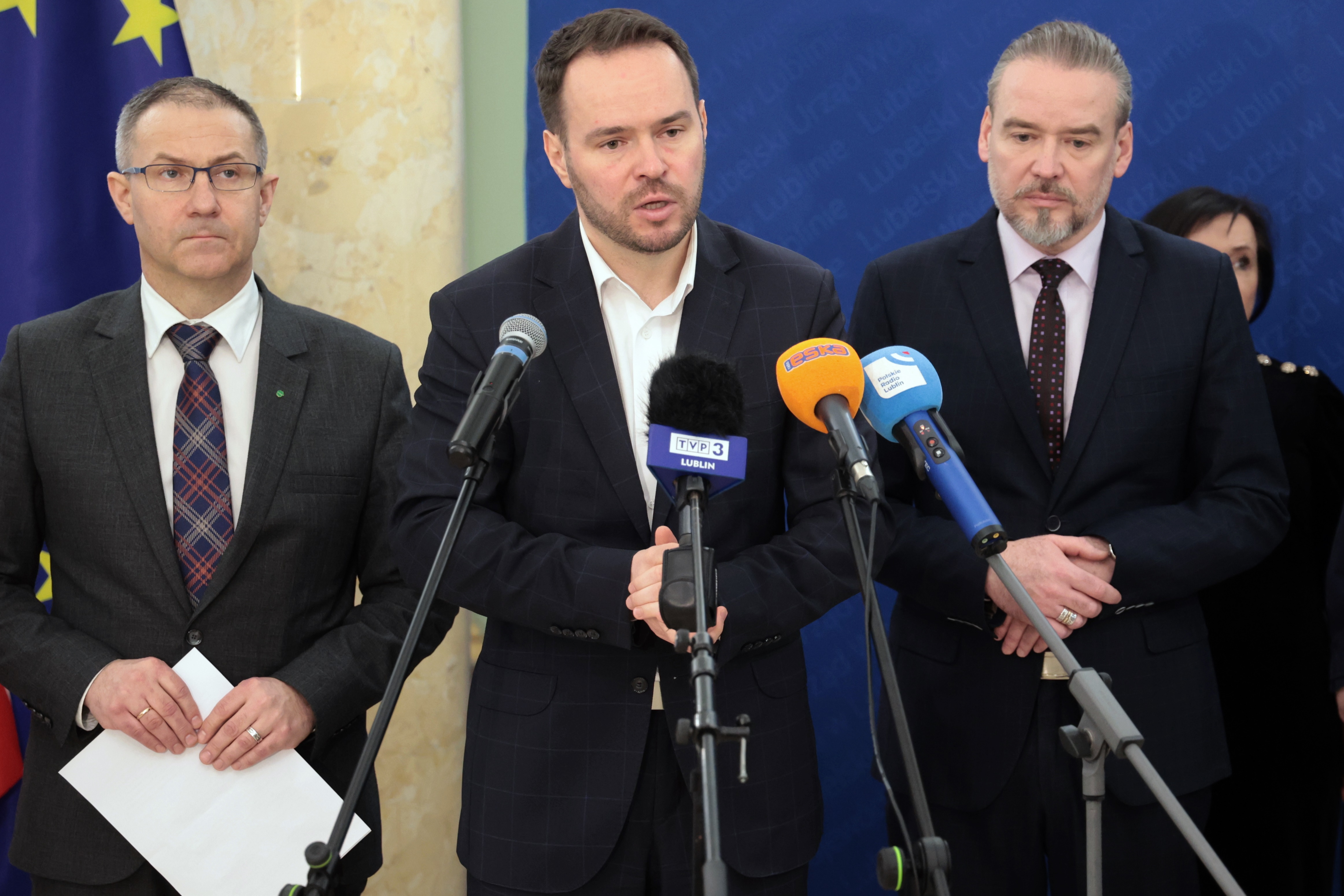 Niekontrolowany przepływ artykułów rolno-spożywczych przez wschodnią granicę, sytuacja związana ze strajkami rolników w województwie lubelskim, a także zapewnienie bezpieczeństwa podczas ich przebiegu były tematami konferencji prasowej wojewody lubelskiego Krzysztofa Komorskiego.