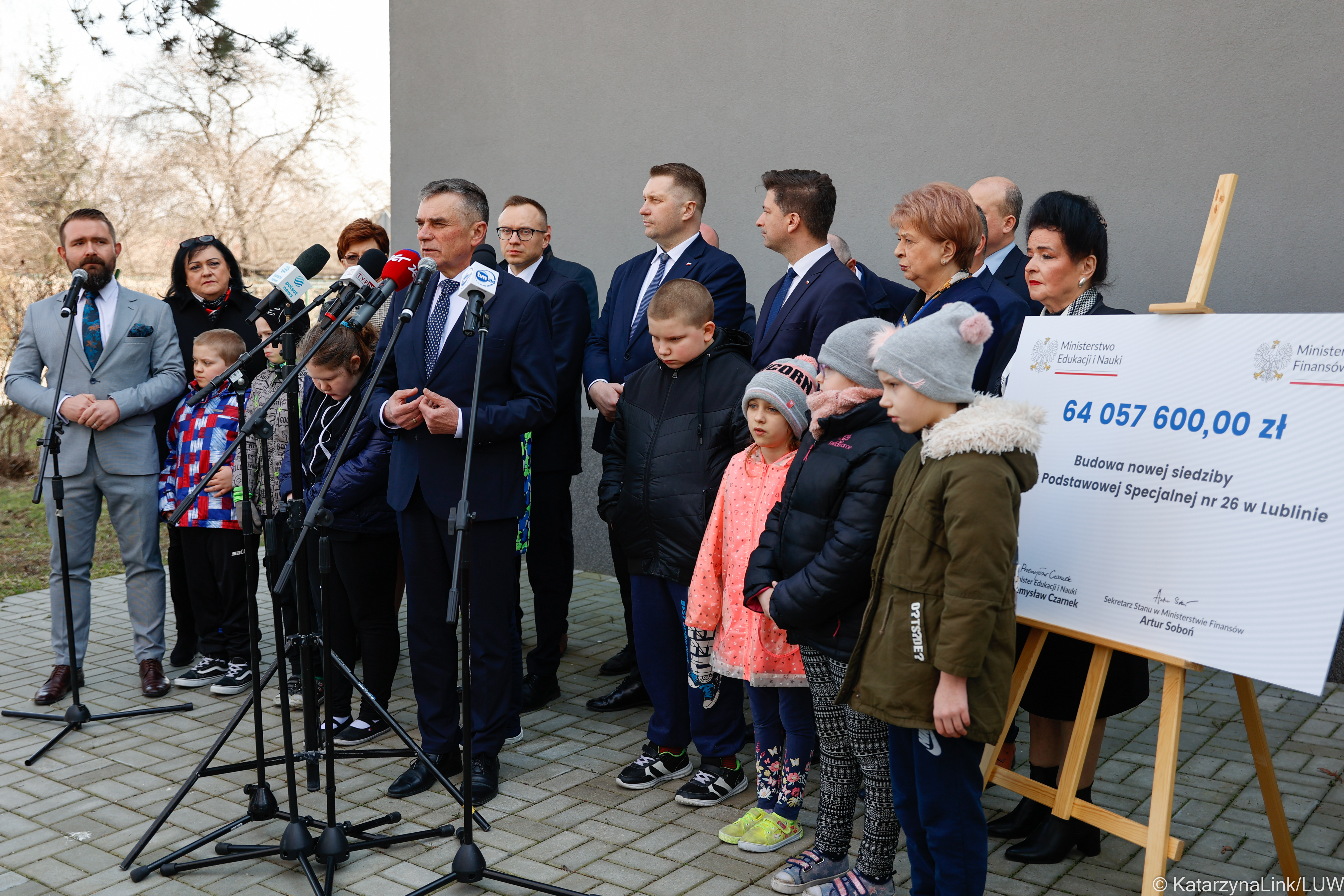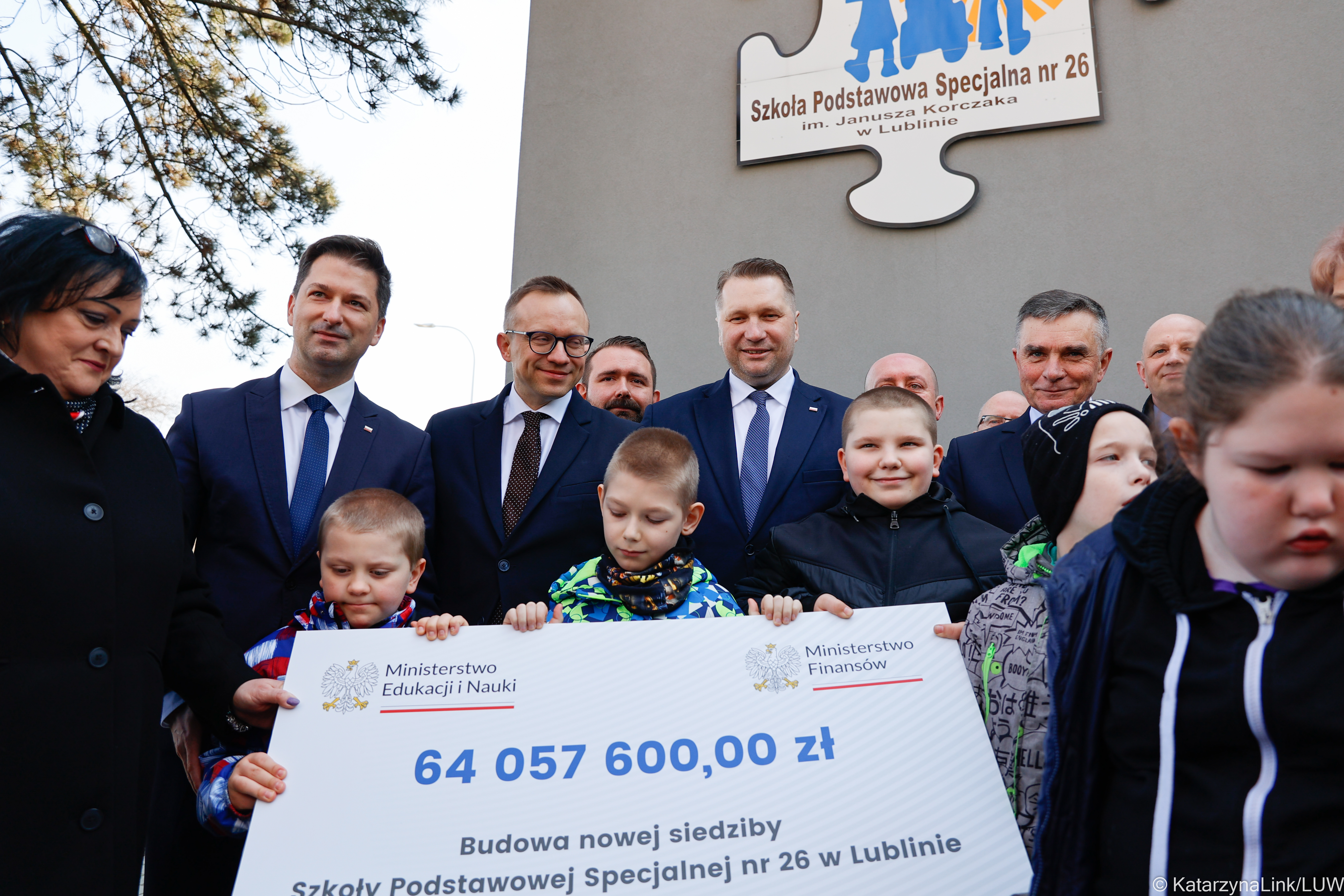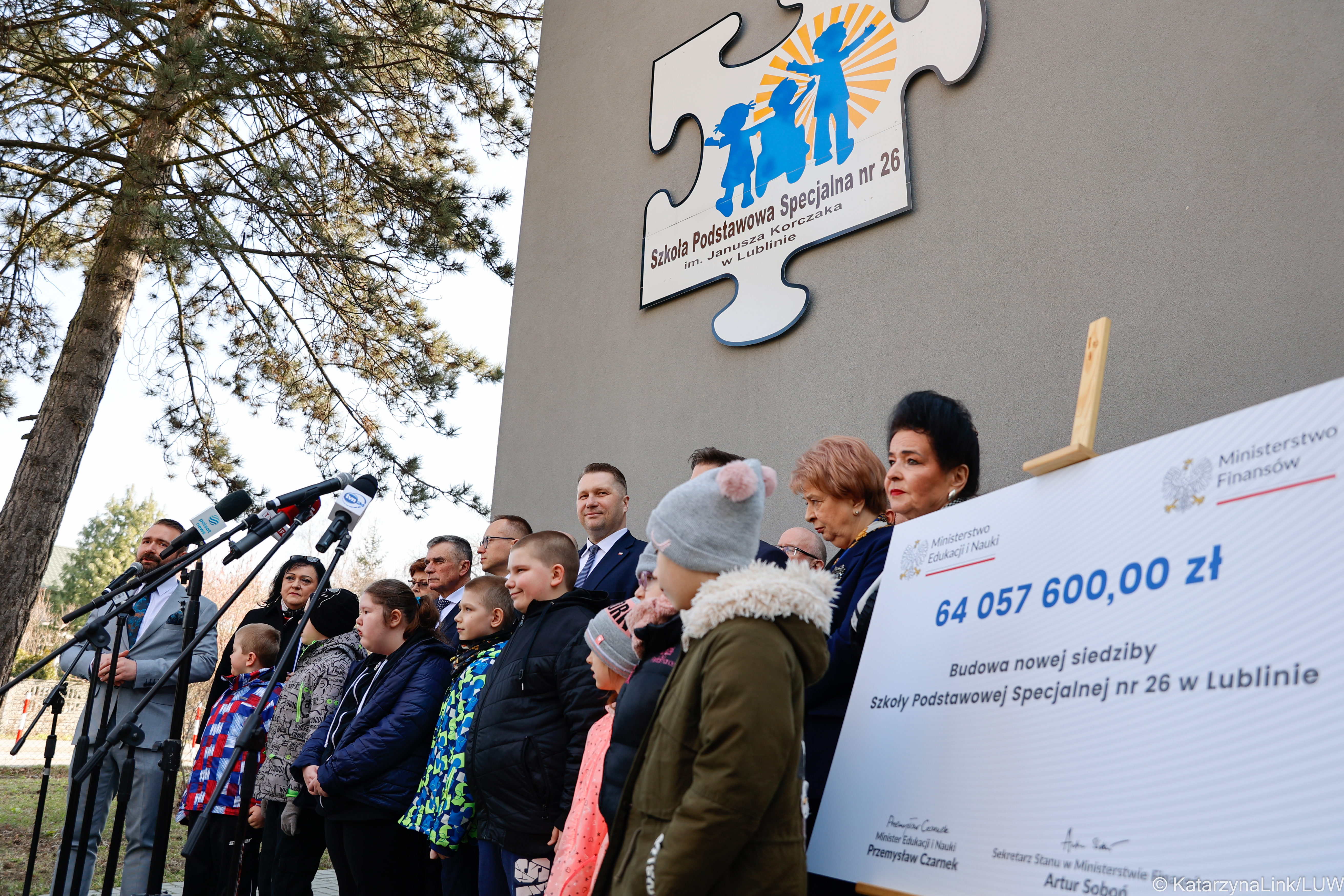 W Lublinie zostanie wybudowana nowa siedziba Szkoły Podstawowej Specjalnej nr 26 im. Janusza Korczaka. Symboliczny czek na dofinansowanie inwestycji w kwocie ponad 64 mln zł przekazali podczas konferencji prasowej minister edukacji i nauki Przemysław Czarnek i sekretarz stanu w Ministerstwie Finansów Artur Soboń. Nowy budynek powstanie na działce przy ulicy Hanki Ordonówny.
