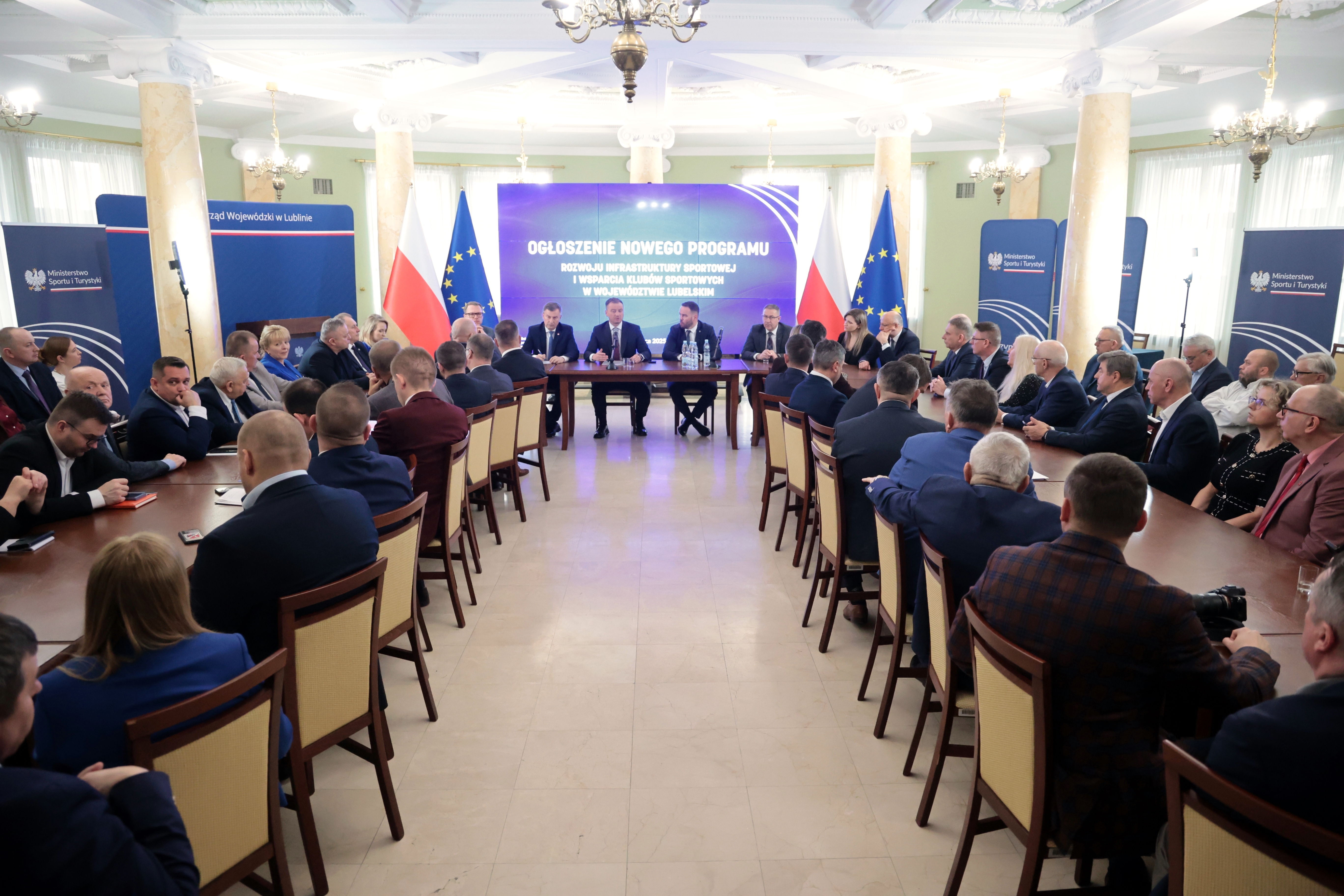 Minister Sportu i Turystyki Sławomir Nitras w towarzystwie wojewody lubelskiego Krzysztofa Komorskiego spotkał się w czwartek w LUW z samorządowcami oraz przedstawicielami klubów sportowych z województwa lubelskiego. Ogłosił jednocześnie dwa nowe programy rozwoju infrastruktury sportowej i wsparcia klubów z naszego regionu.