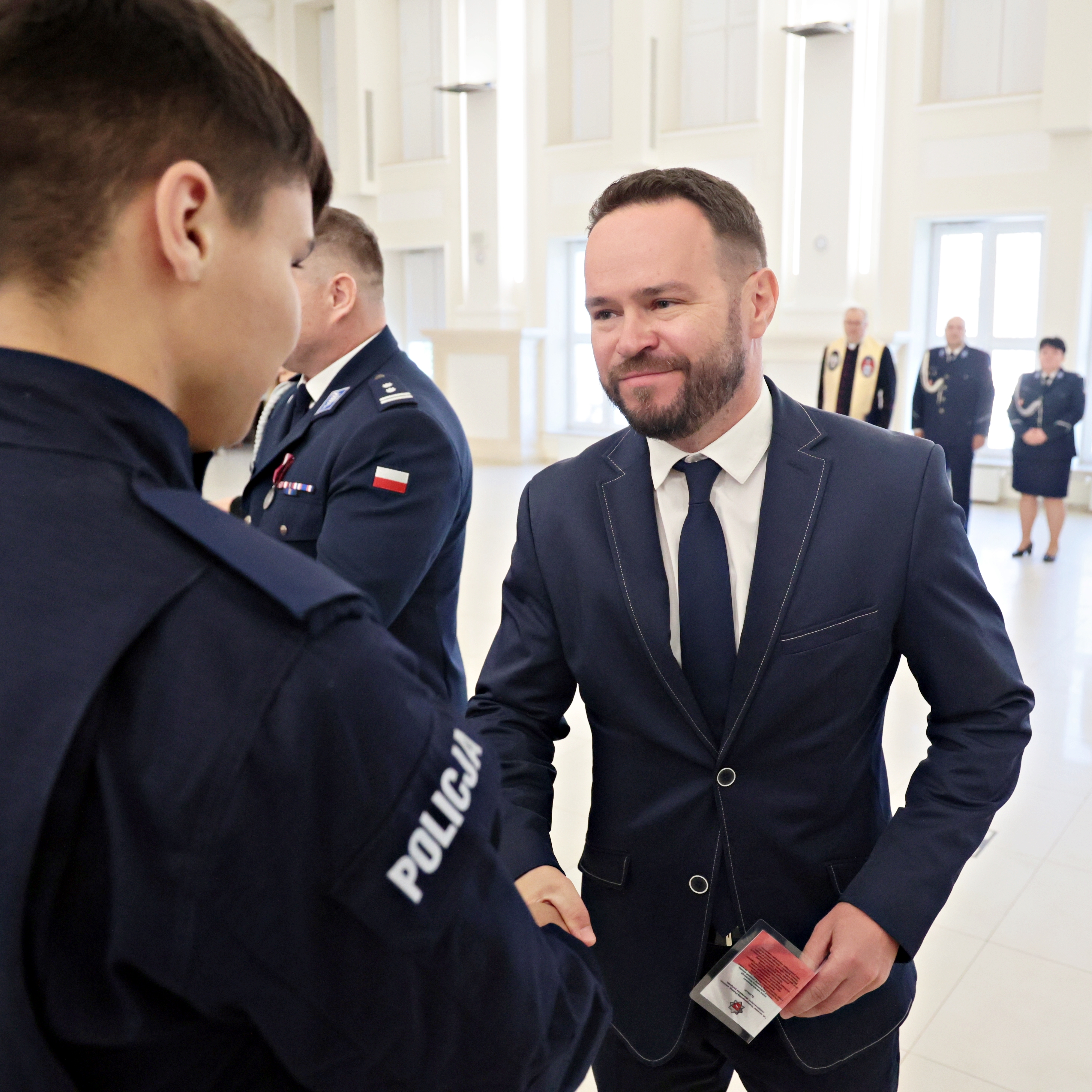 Przyznam, że zawsze wzruszają mnie słowa wypowiadanej przysięgi. Słychać w nich autentyczność - zwłaszcza we fragmencie mówiącym o narażaniu życia. Bardzo Wam dziękuję, ale i gratuluję, bo dołączacie do jednego z najlepszych garnizonów policji w Polsce. Dziękuję też Waszym rodzinom i proszę, by o Was dbały, bo będziecie troszczyli się o bezpieczeństwo nas wszystkich. Jesteście wspaniałymi, odważnymi i bezinteresownymi ludźmi. Należy się Wam za to ogromny szacunek. Niech ten mundur zawsze przynosi Wam dumę i satysfakcję