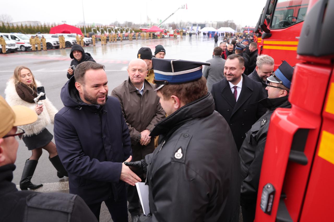 Dzisiejsza uroczysta zbiórka jest wyjątkowa. Po raz pierwszy na terenie naszego województwa przekazujemy takie ilości pojazdów i sprzętu ratowniczego