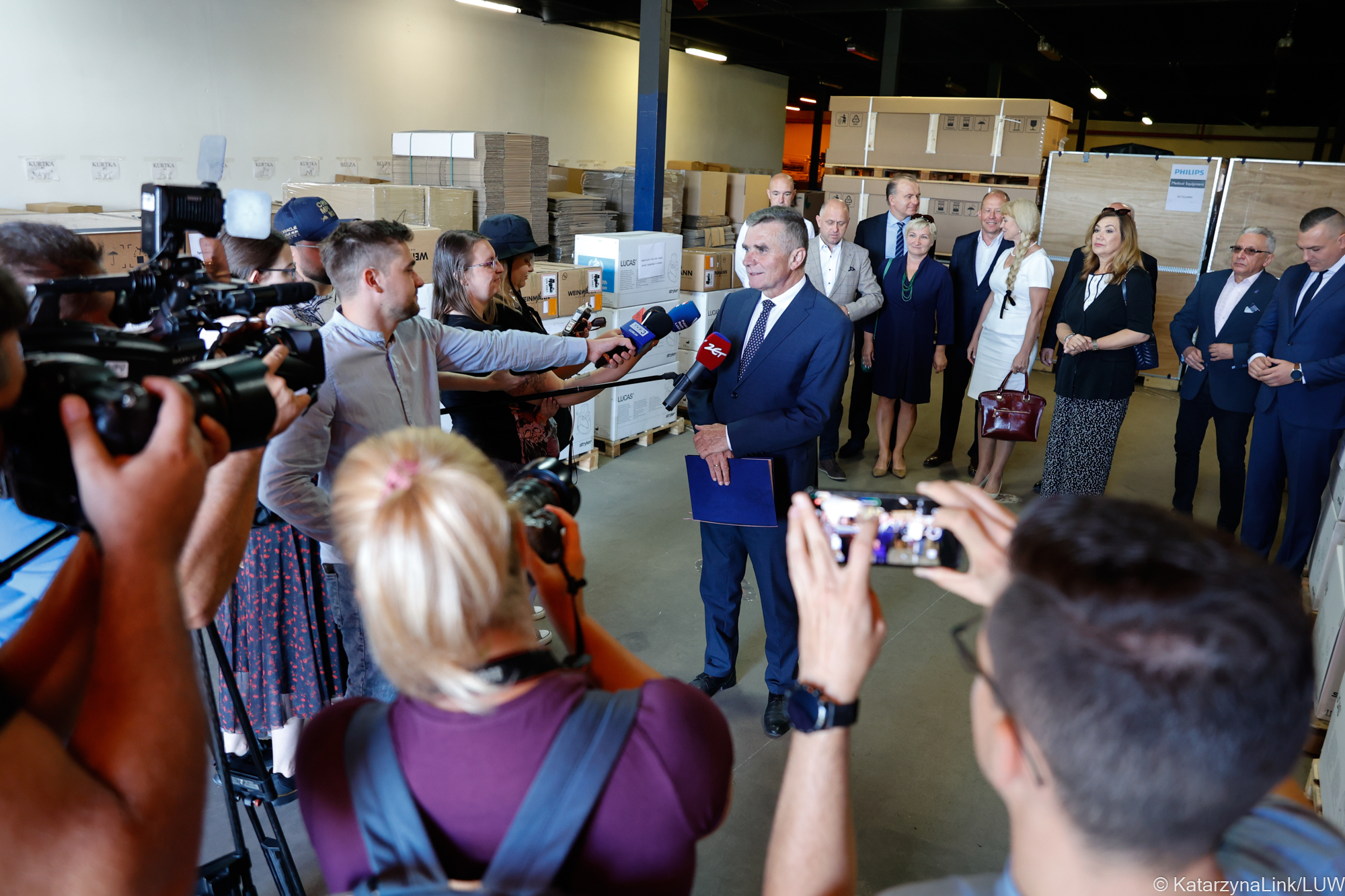 Stacje pogotowia ratunkowego i szpitale z terenu województwa lubelskiego doposażone zostały w defibrylatory, respiratory i urządzenia do kompresji klatki piersiowej. Nowoczesne urządzenia, które wspomagają pracę ratowników medycznych, przekazała Światowa Organizacja Zdrowia. Ich wartość to ok. 2,4 mln zł. Szczegóły pomocy przedstawił podczas briefingu prasowego w Wojewódzkim Magazynie Darów, wojewoda lubelski Lech Sprawka.