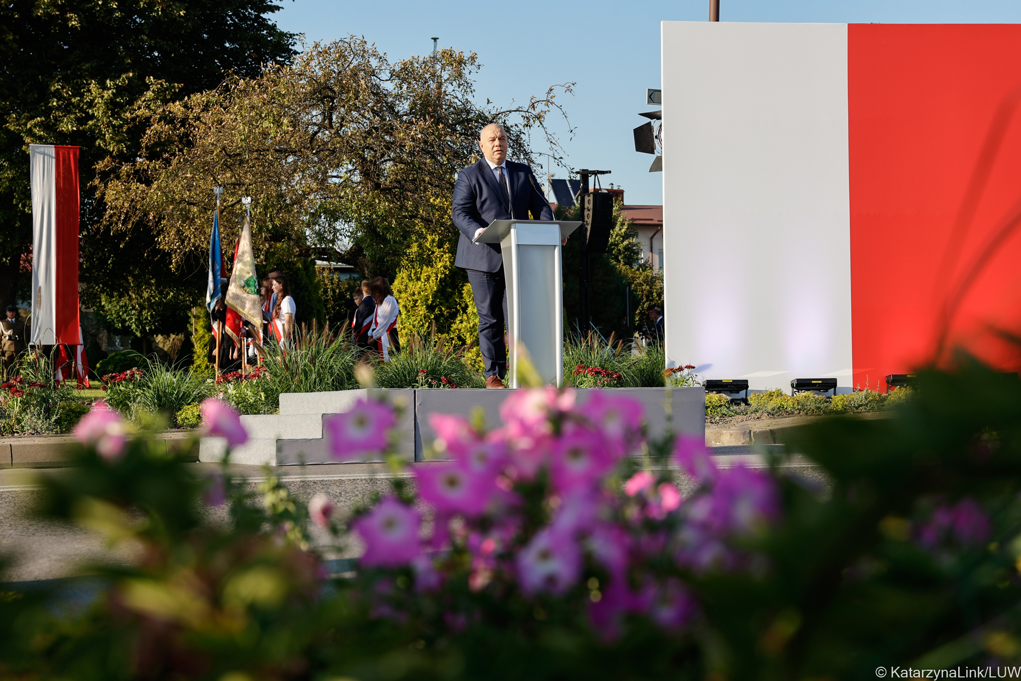 Głos zabrał również minister aktywów państwowych Jacek Sasin, który zaznaczył, że wojna wywołana przez Hitlera i Stalina, przez Niemcy i Związek Sowiecki, dotknęła Polskę w szczególny sposób. Dlatego: