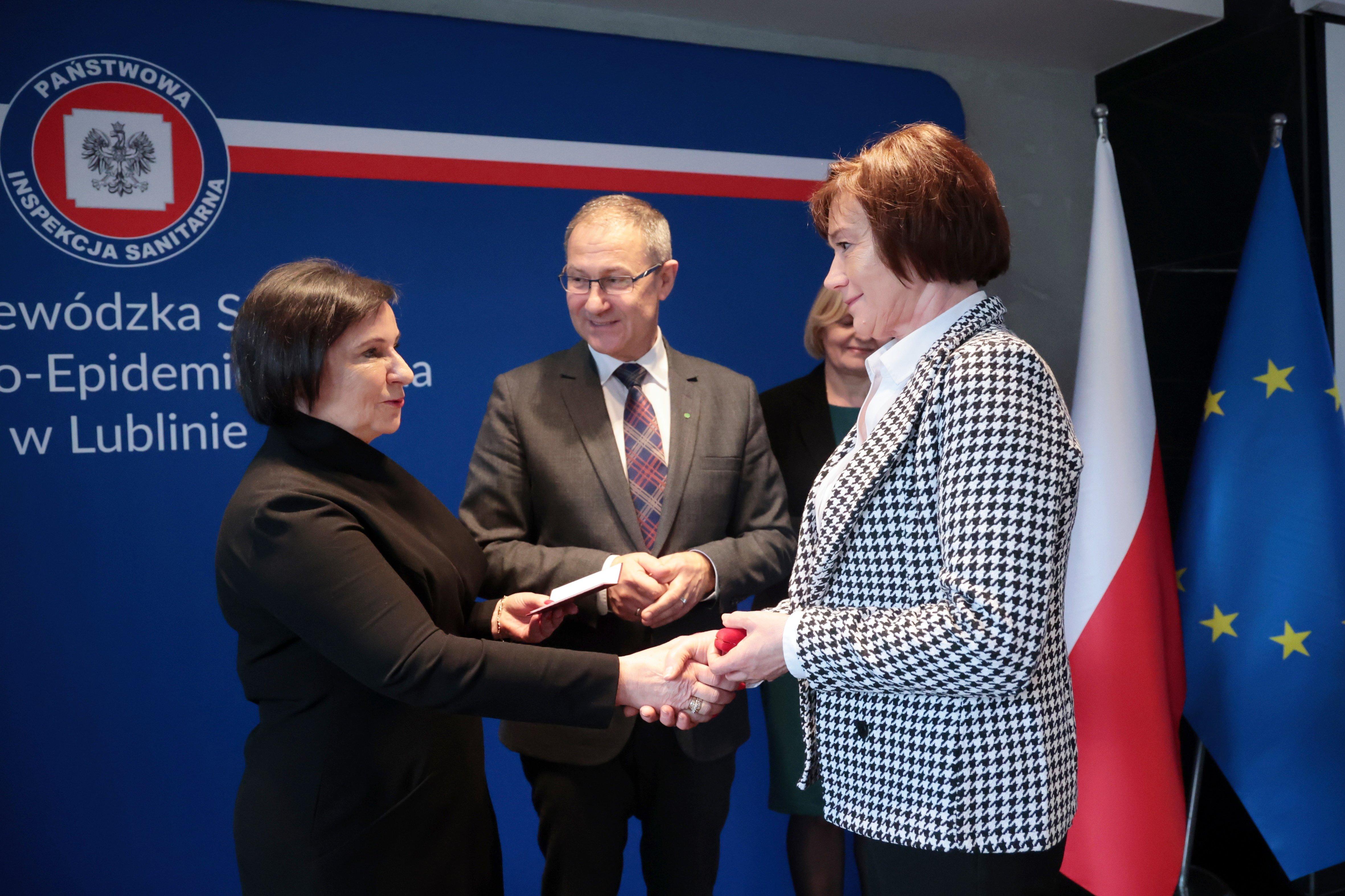 Srebrny oraz Brązowy Krzyż Zasługi trafiły w ręce dwóch pracowników lubelskiego Sanepidu. Ponadto, 35 pracowników zostało nagrodzonych Odznakami Honorowymi Za Zasługi Dla Ochrony Zdrowia. Uroczystość odbyła się w czwartek w Wojewódzkiej Stacji Sanitarno-Epidemiologicznej przy ul. Pielęgniarek 6 w Lublinie.