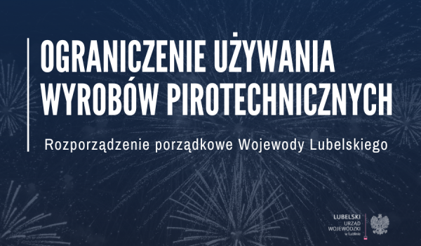 W dniu 24 grudnia 2022 r. wejdzie w życie rozporządzenie porządkowe nr 19 Wojewody Lubelskiego Lecha Sprawki z dnia 20 grudnia 2022 r. w sprawie ograniczenia używania wyrobów pirotechnicznych na terenie województwa lubelskiego.
