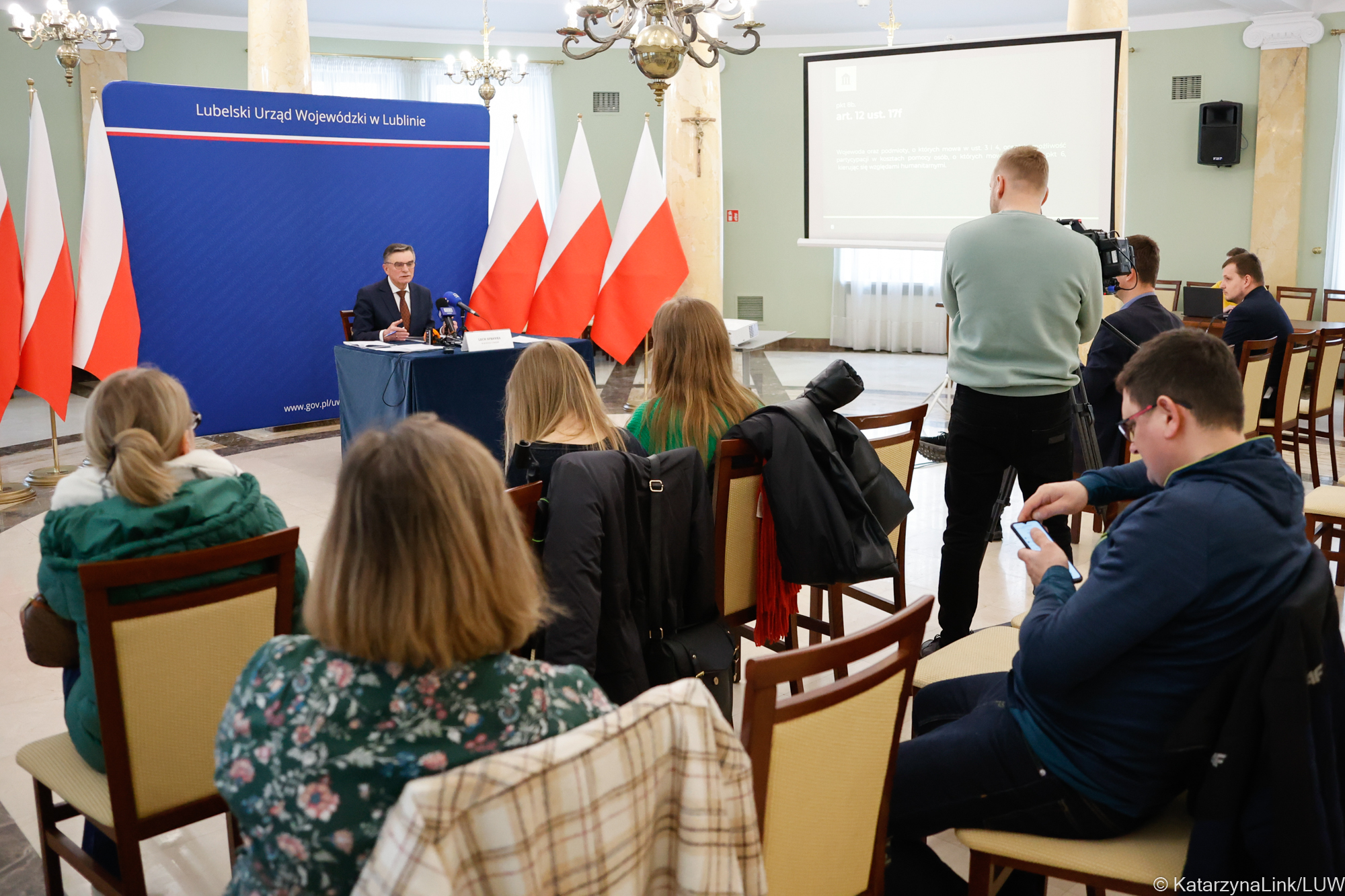 W Lubelskim Urzędzie Wojewódzkim odbyła się konferencja prasowa wojewody lubelskiego Lecha Sprawki dotycząca nowelizacji ustawy o pomocy obywatelom Ukrainy. Wojewoda omówił wytyczne dotyczące partycypacji w kosztach zakwaterowania i wyżywienia w miejscach stałego zakwaterowania na terenie województwa lubelskiego. Wg stanu na 8 marca, w 227 ośrodkach, na 6 775 dostępnych miejsc, zajętych jest 4 382.