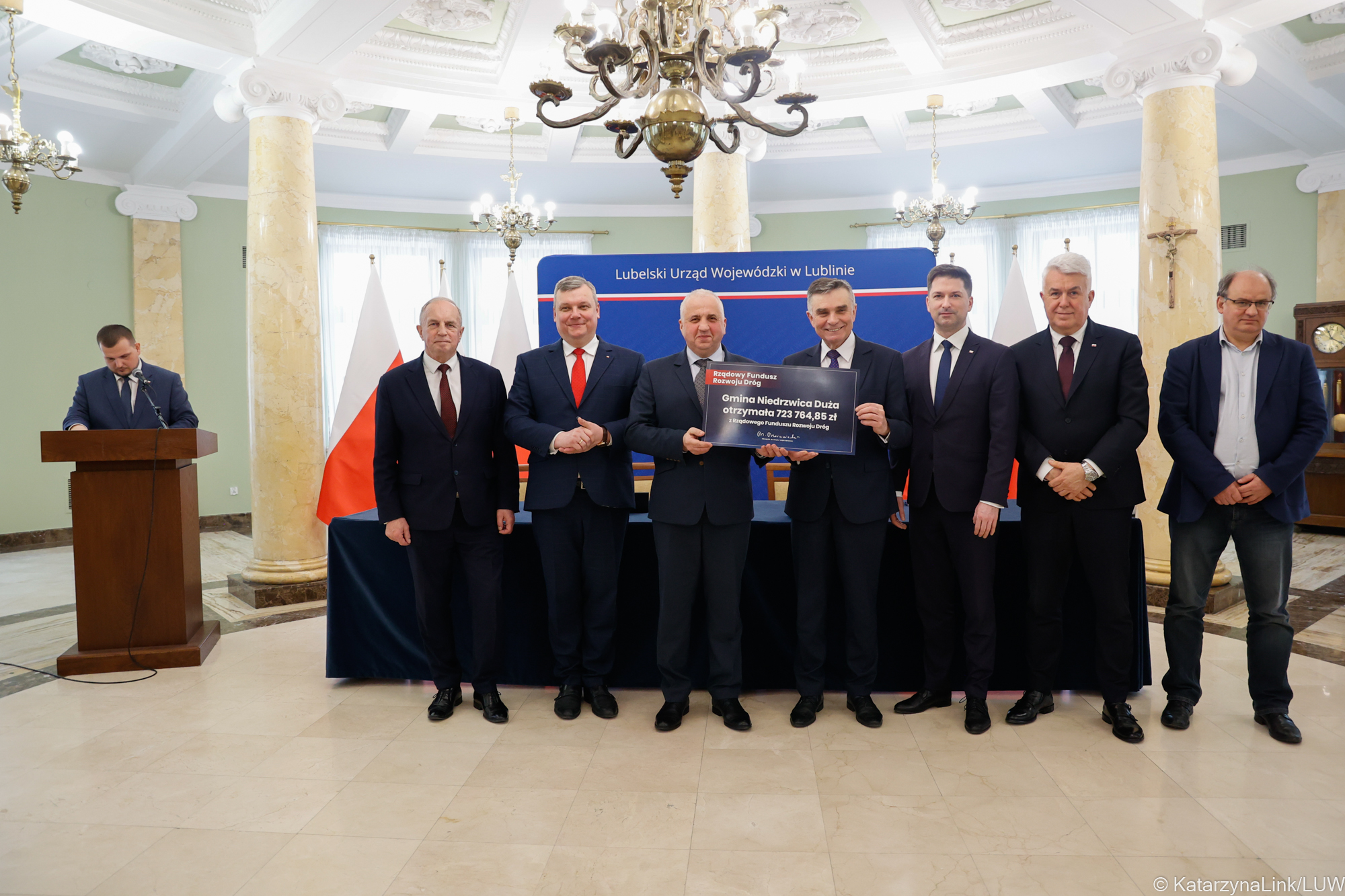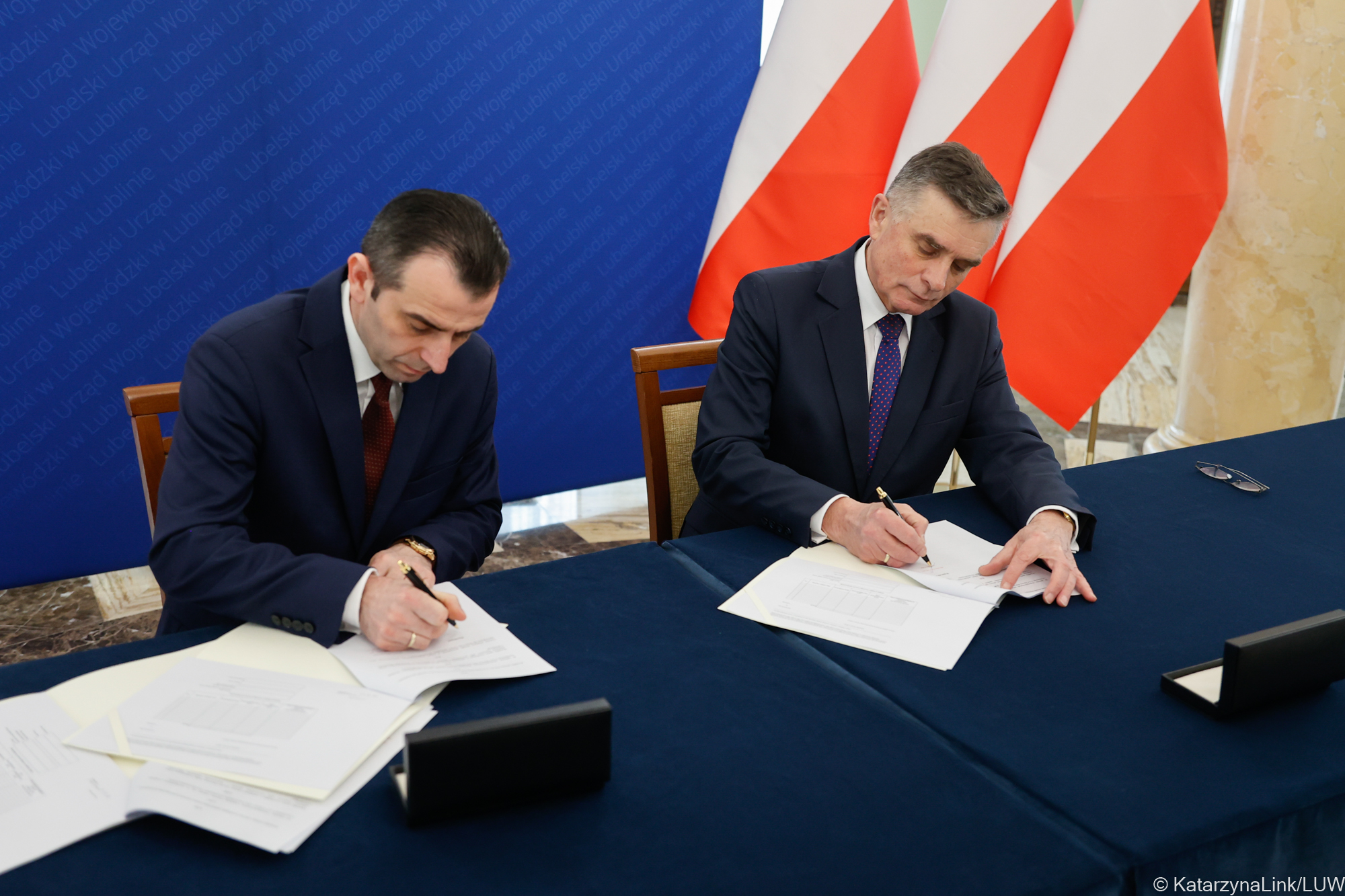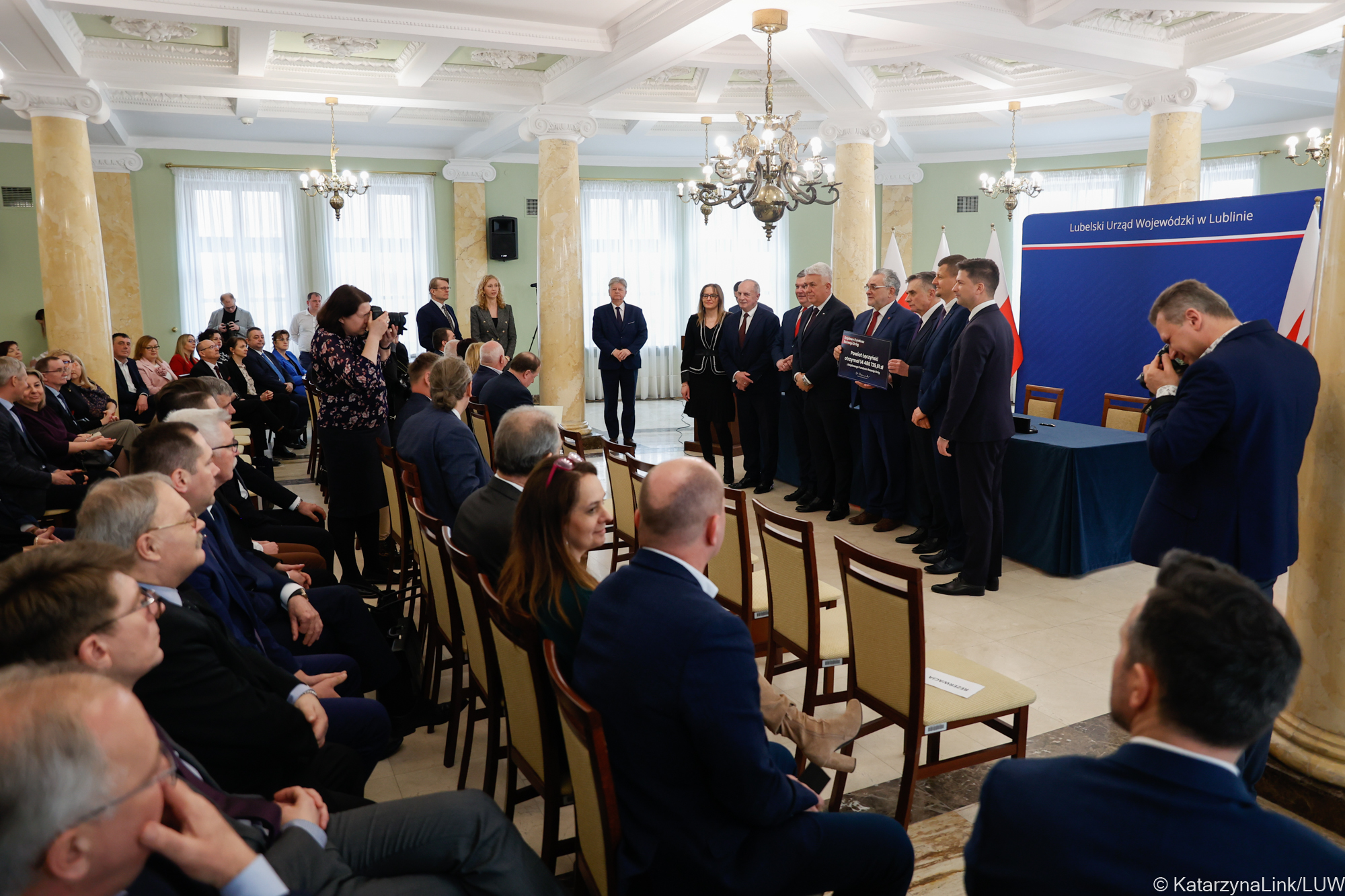 Przedstawiciele 51 samorządów z terenu województwa lubelskiego podpisali z wojewodą lubelskim Lechem Sprawką umowy na realizację łącznie 115 zadań do dofinasowania ze środków Rządowego Funduszu Rozwoju Dróg w 2023 r. na łączną kwotę prawie 231,2 mln zł. Samorządowcy odebrali symboliczne czeki.