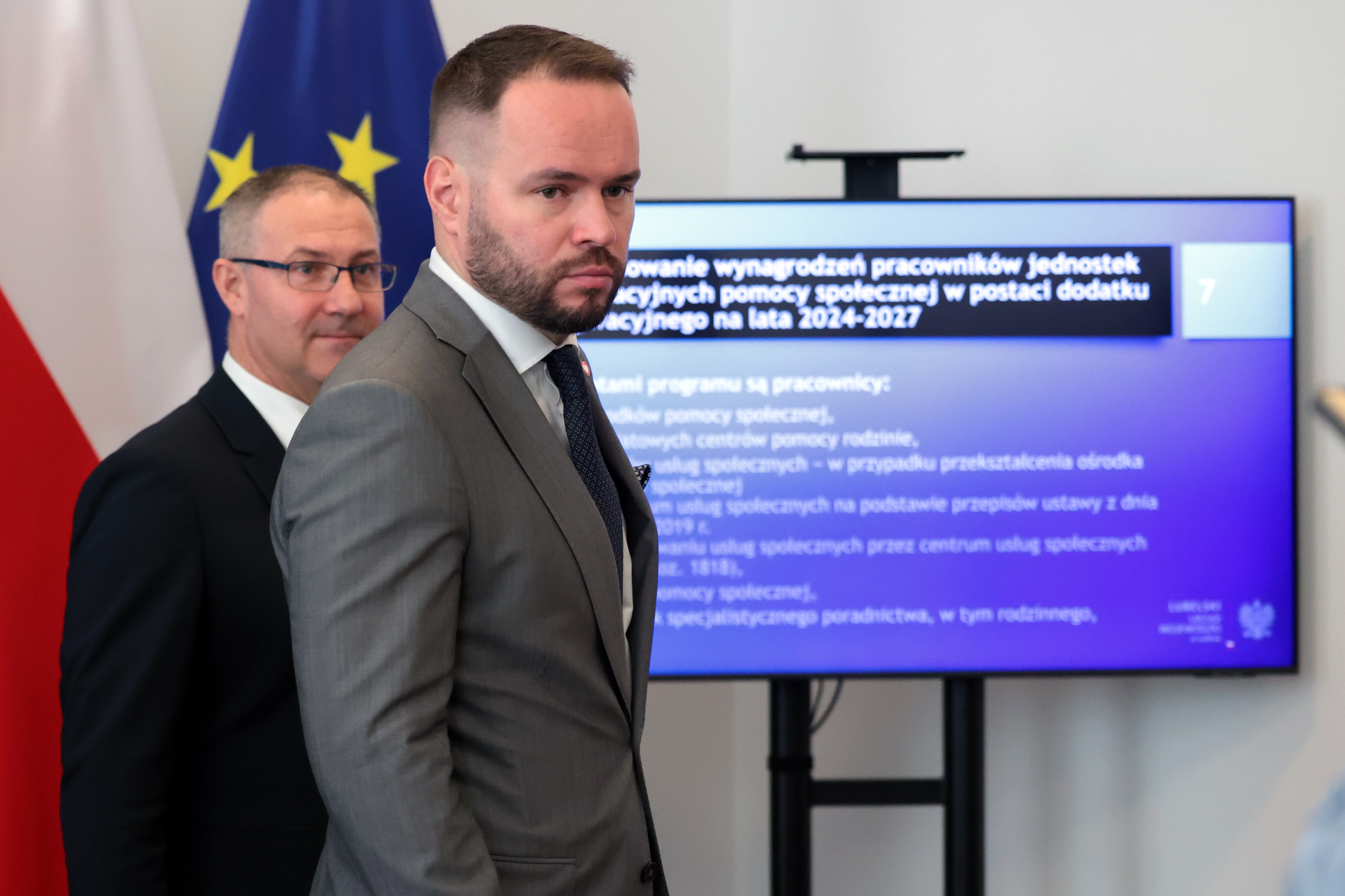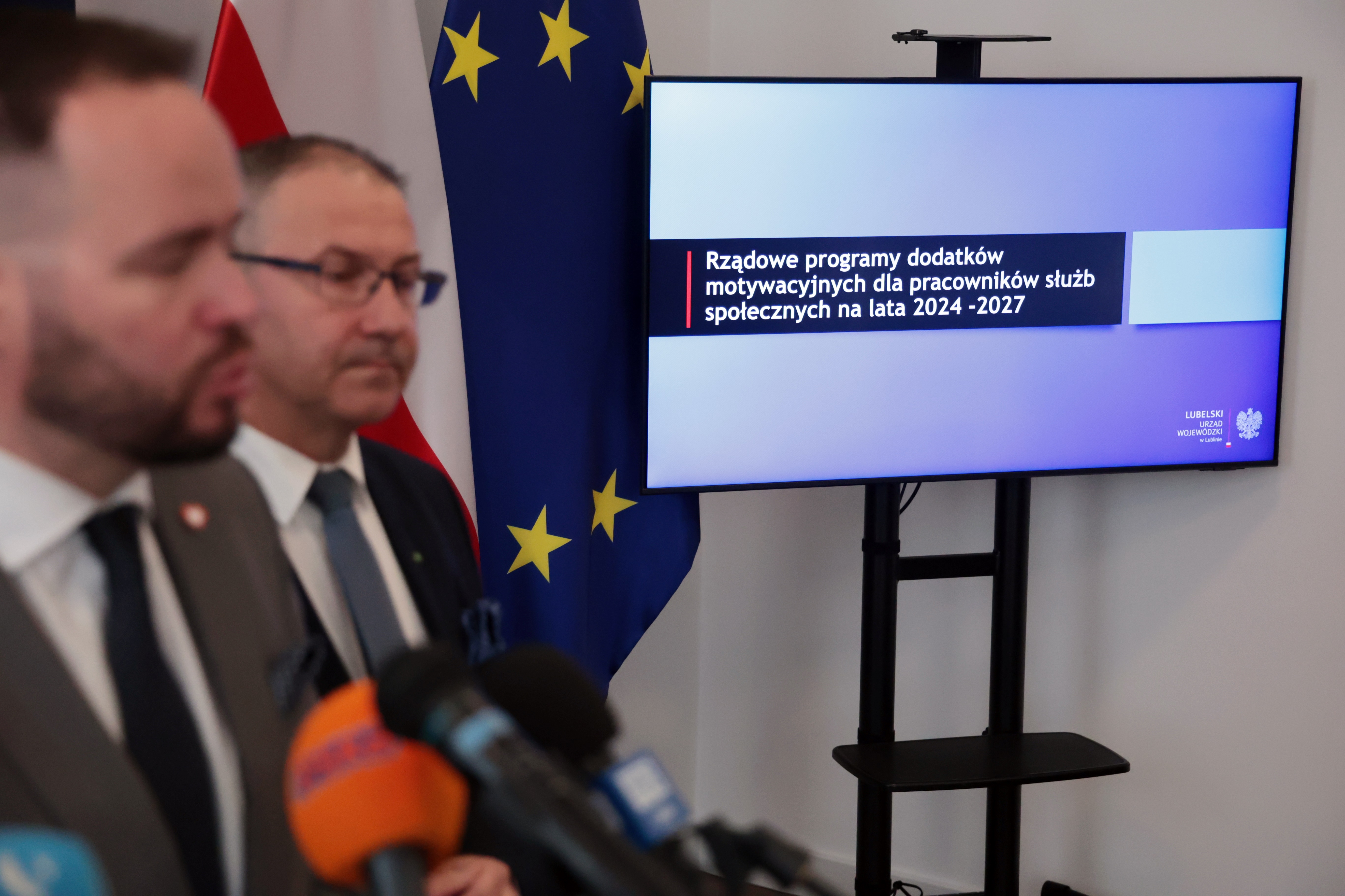 Blisko pół miliarda złotych trafi na konto pracowników służb społecznych z województwa lubelskiego. Tylko w tym roku Lubelski Urząd Wojewódzki przeznaczy na ten cel 64,4 mln złotych. O szczegółach realizacji programu mówili w środę na briefingu prasowym wojewoda lubelski Krzysztof Komorski oraz wicewojewoda Andrzej Maj.