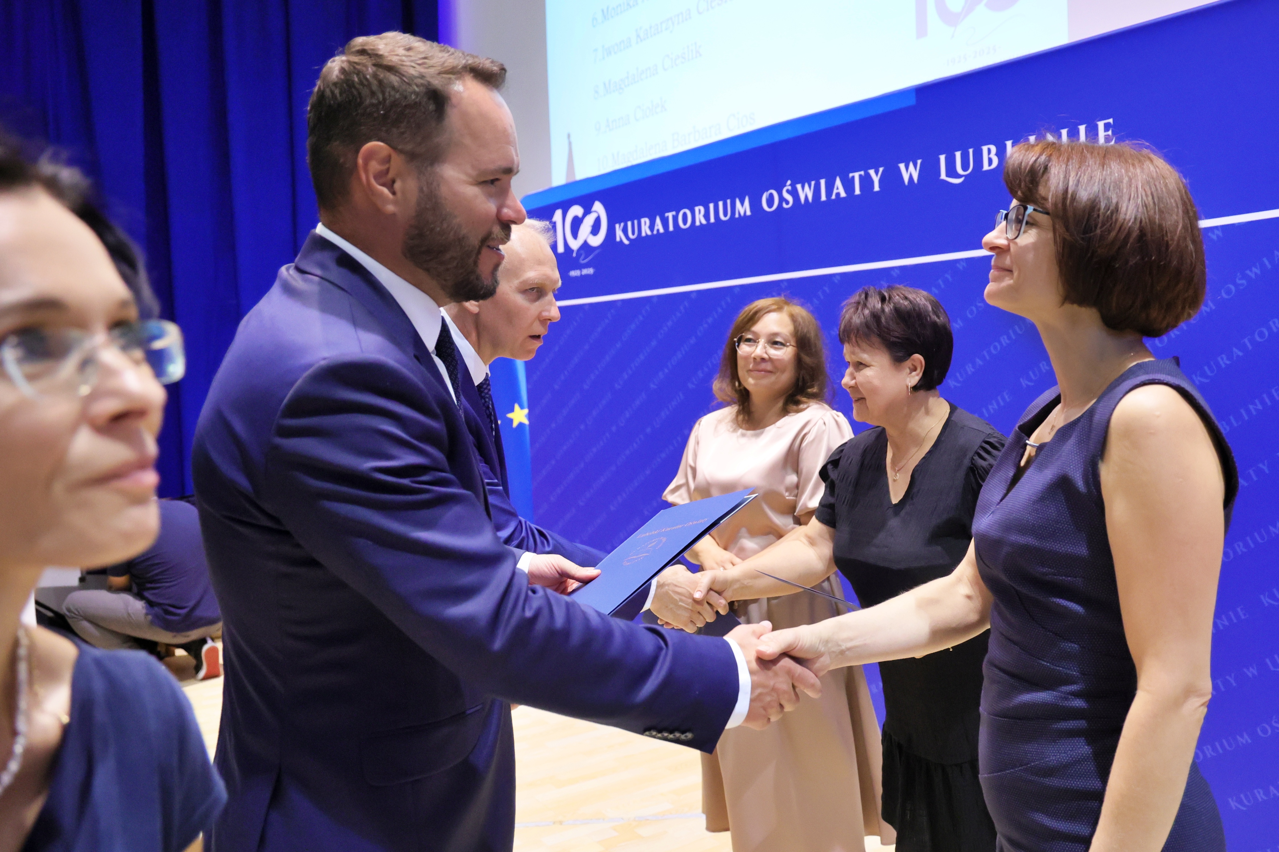 Ponad 200 osób odebrało w piątek akty nadania stopnia awansu zawodowego nauczyciela dyplomowanego. W uroczystości, która odbyła się w Sali Błękitnej Lubelskiego Urzędu Wojewódzkiego, udział wzięli wojewoda lubelski Krzysztof Komorski oraz Lubelski Kurator Oświaty Tomasz Szabłowski.