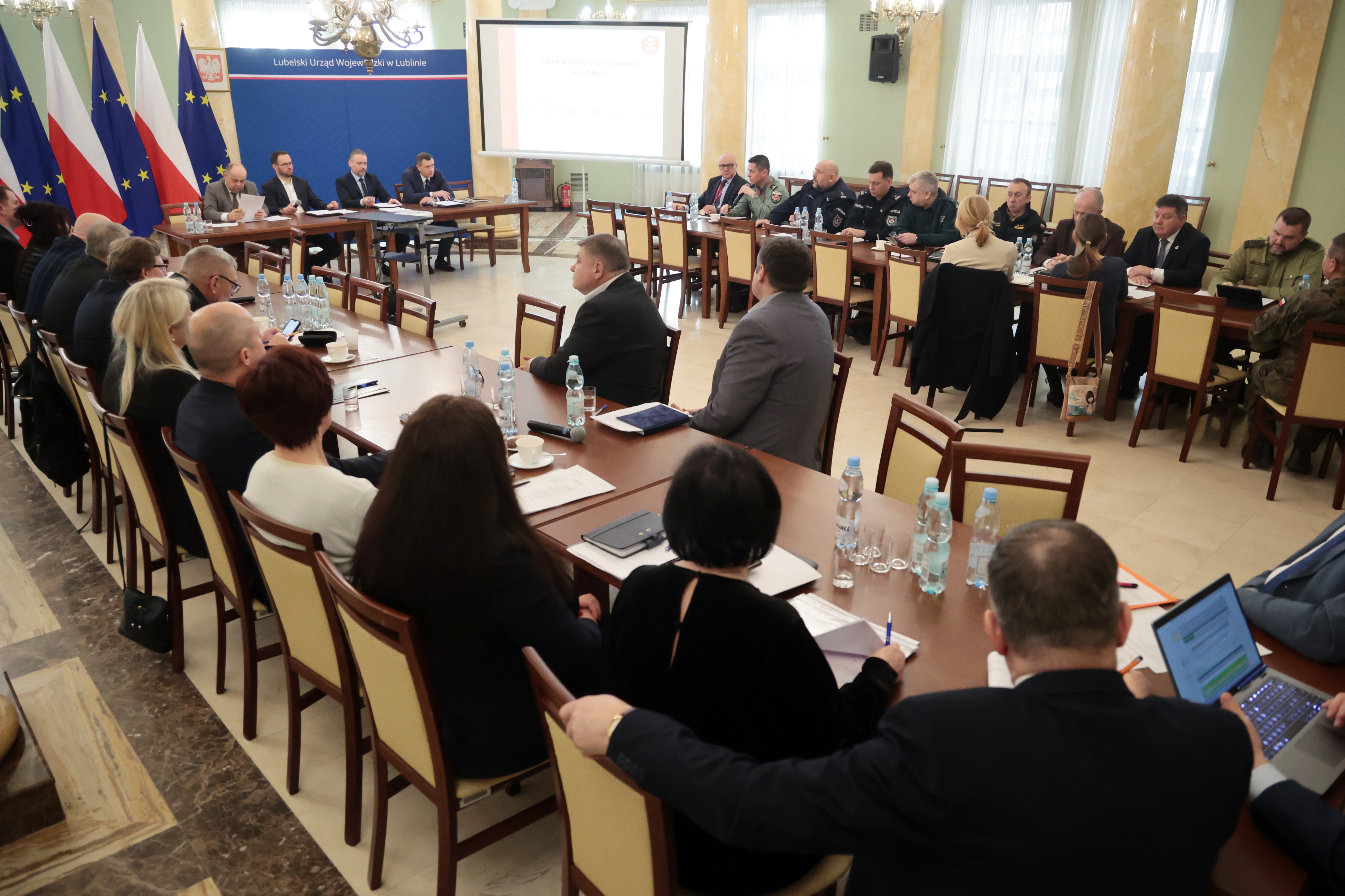 Posiedzenie odbyło się w Lubelskim Urzędzie Wojewódzkim w Lublinie. Wzięli w nim udział wicewojewoda lubelski Wojciech Wołoch, dyrektor generalny Lubelskiego Urzędu Wojewódzkiego Jarosław Szymczyk i dyrektor Wydziału Bezpieczeństwa i Zarządzania Kryzysowego Dariusz Działo.