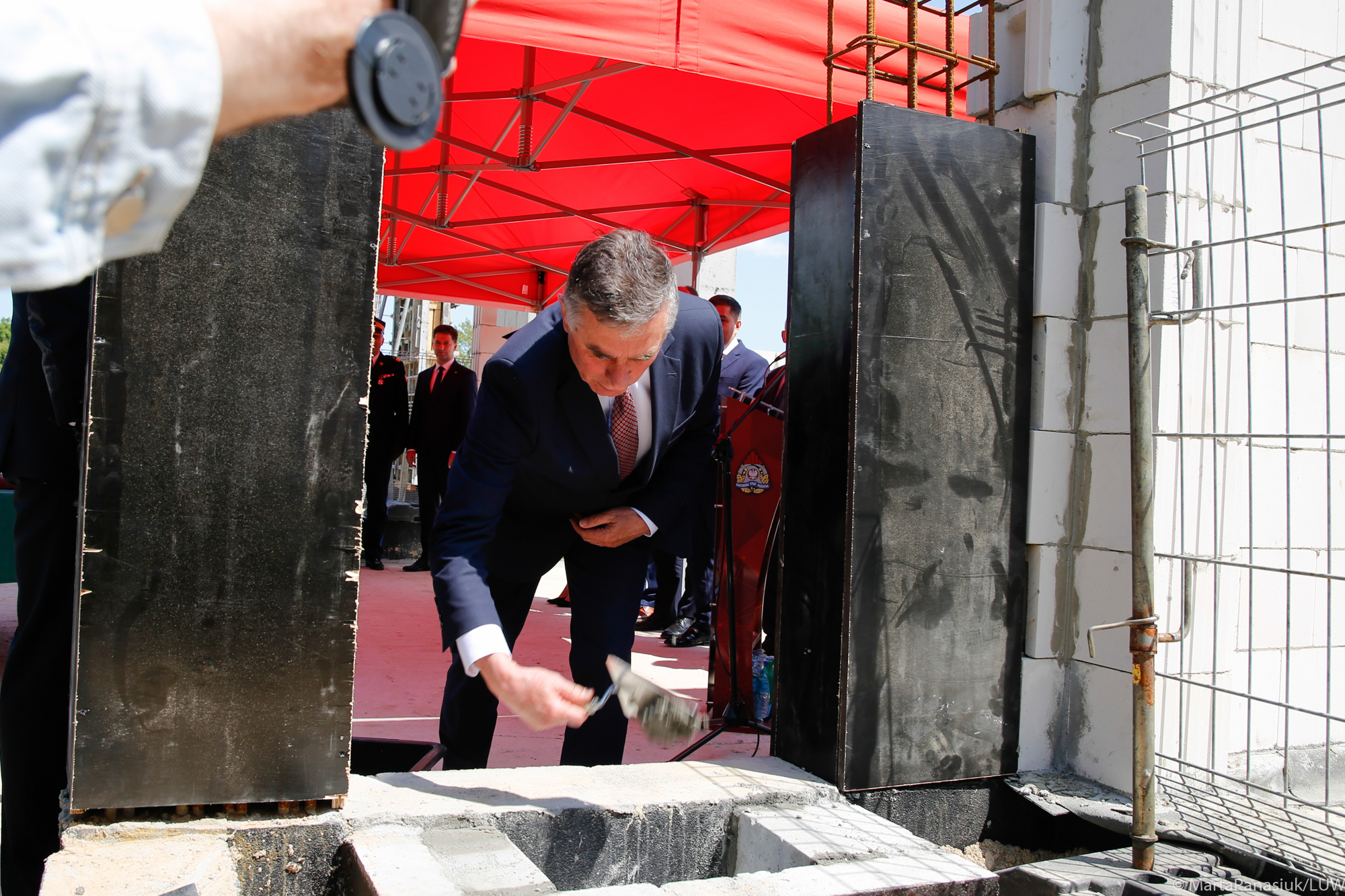 Pragnę równocześnie złożyć gratulacje z okazji wmurowania aktu erekcyjnego pod budowę nowej siedziby Komendy Powiatowej Państwowej Straży Pożarnej. To cieszy. Bardzo chętnie współpracujemy przy realizacji tej inwestycji, zarówno w wymiarze finansowym, ale również organizacyjnym. Życzę dalszego, wspaniałego rozwoju, ku radości mieszkańców naszego województwa, którzy czują się bezpieczni