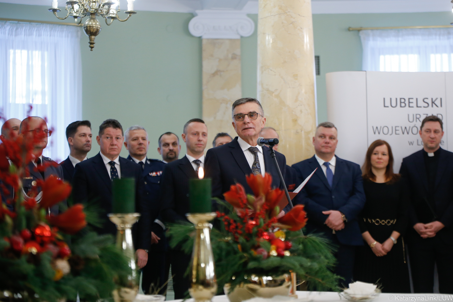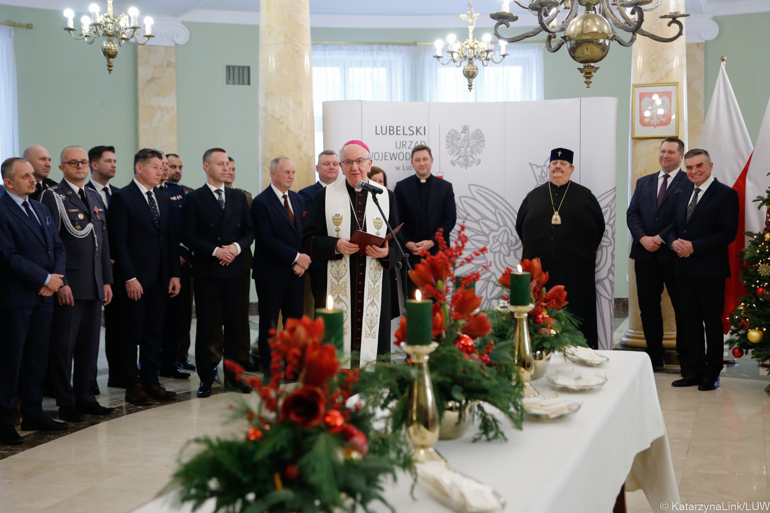 W spotkaniu uczestniczyli m.in. abp Stanisław Budzik metropolita lubelski, prawosławny arcybiskup lubelski i chełmski Abel, proboszcz parafii ewangelicko-augsburskiej Świętej Trójcy w Lublinie ks. Grzegorz Brudny, duszpasterz pracowników urzędów i instytucji państwowych i samorządowych ks. Krzysztof Kwiatkowski, minister edukacji i nauki Przemysław Czarnek, przedstawiciele służb dyplomatycznych i konsularnych, parlamentarzyści Ziemi Lubelskiej, wicemarszałek województwa lubelskiego Michał Mulawa, wicewojewodowie Robert Gmitruczuk i Bolesław Gzik, zastępca prezydenta miasta Lublin Mariusz Banach, dyrektor generalny Lubelskiego Urzędu Wojewódzkiego Agata Grula, przedstawiciele wszystkich szczebli władz samorządowych, administracji zespolonej i niezespolonej, jednostek organizacyjnych ochrony zdrowia oraz konsultantów wojewódzkich, instytucji państwowych, organizacji pozarządowych, związków pracodawców i związków zawodowych, przedstawiciele związków i stowarzyszeń kombatanckich, Wojska Polskiego, służb mundurowych i agencji, władz uczelni wyższych i środowiska oświatowego, przedstawiciele Wojewódzkiej Rady Dialogu Społecznego, rad i organów pomocniczych działających przy Wojewodzie Lubelskim, a także dyrektorzy, kierownicy i pracownicy Urzędu.