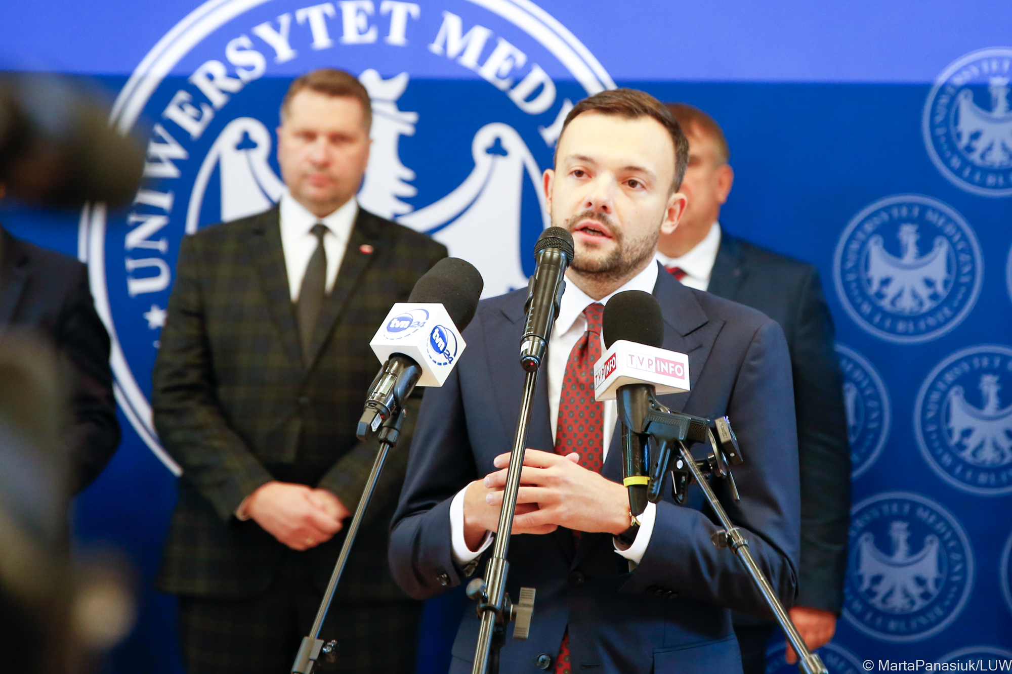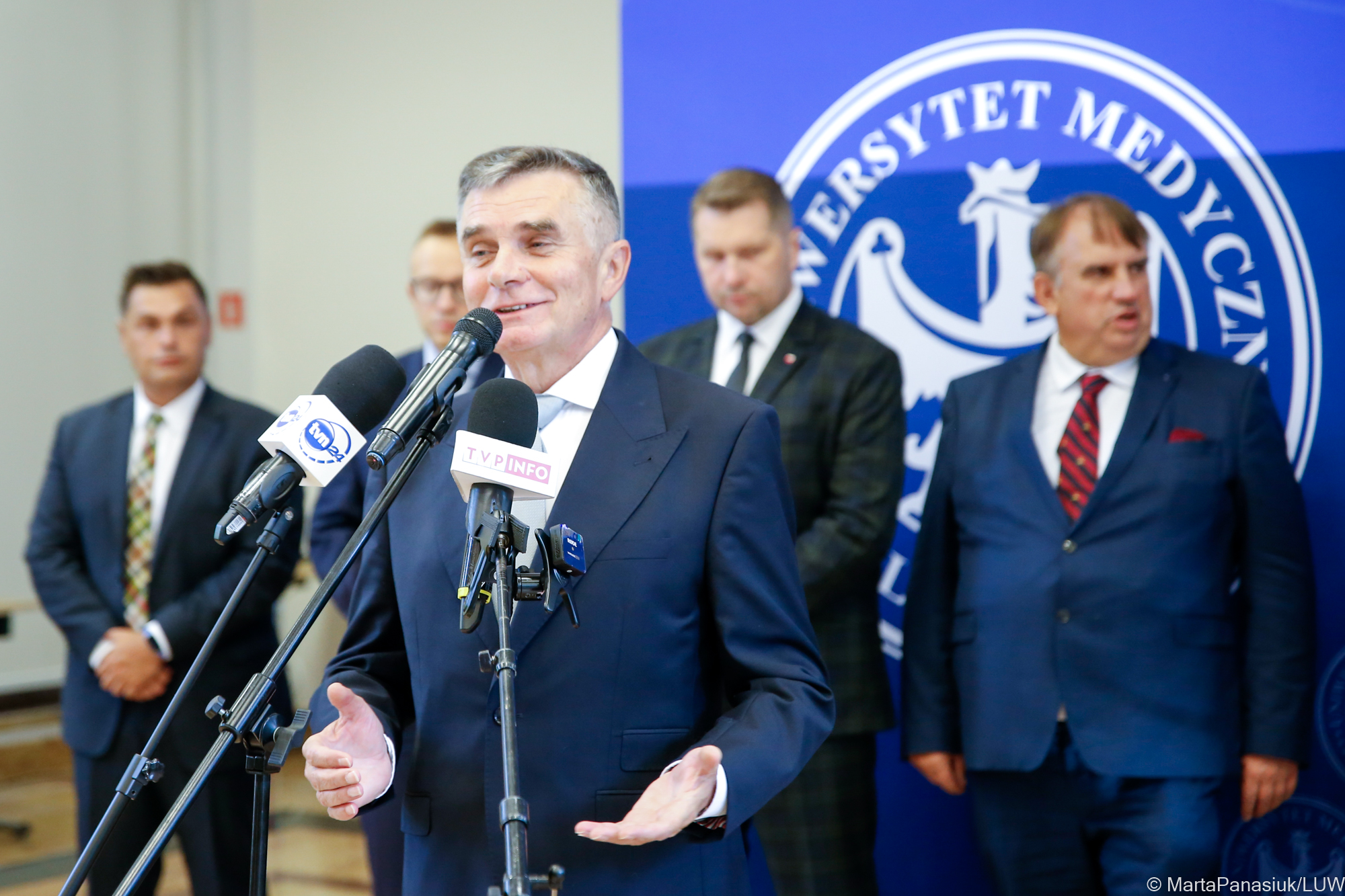 Uniwersytet Medyczny w Lublinie otrzymał dofinansowanie w wysokości ponad 28 mln zł na utworzenie jednego z 18. Regionalnych Centrów Medycyny Cyfrowej w Polsce, służących analizie danych, wsparciu badań klinicznych i opiece szpitalnej w obszarze rozwiązań cyfrowych. To ważny krok na drodze do stworzenia innowacyjnego systemu ochrony zdrowia. W ceremonii przekazania symbolicznego czeku udział wzięli minister edukacji i nauki Przemysław Czarnek i wojewoda lubelski Lech Sprawka.