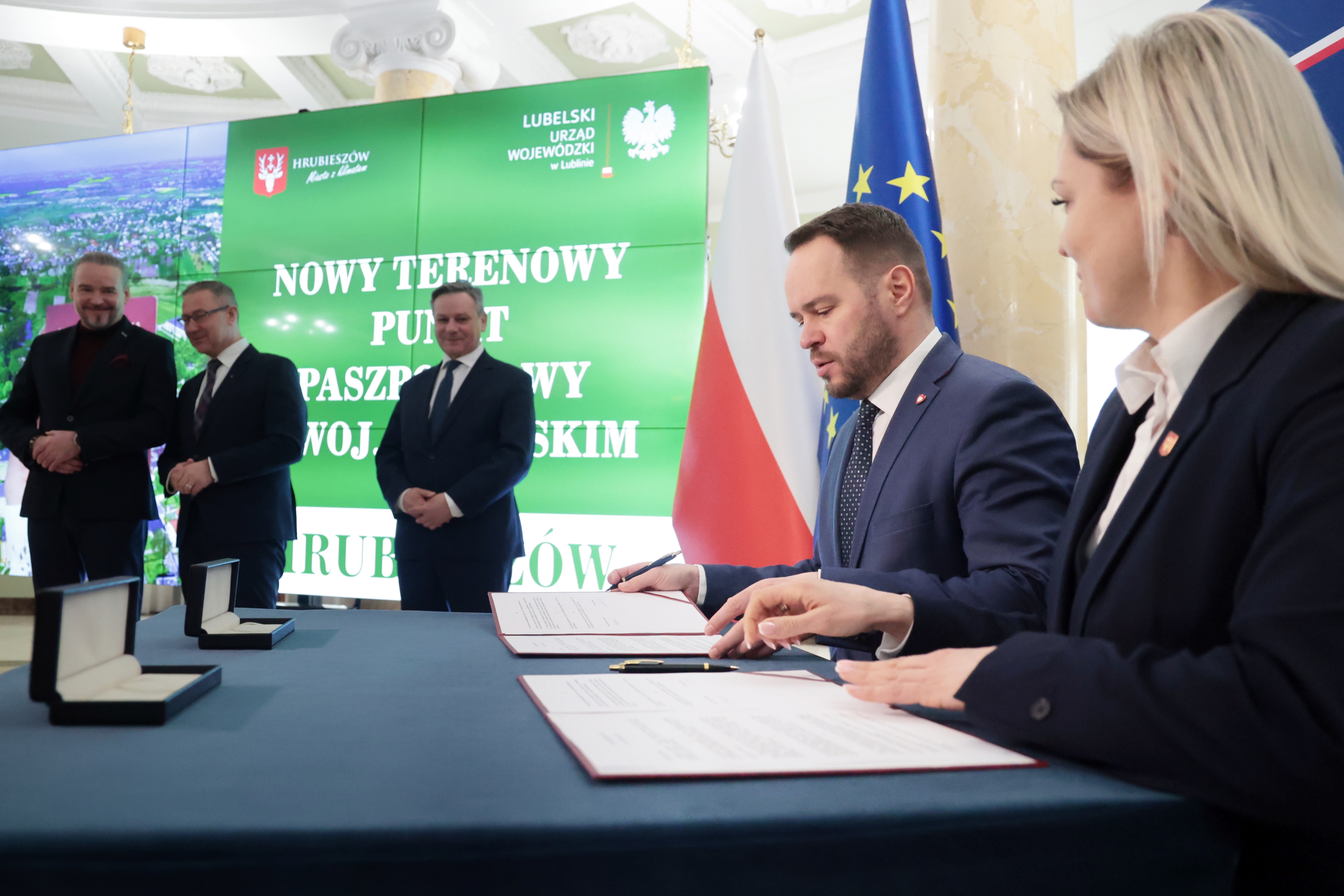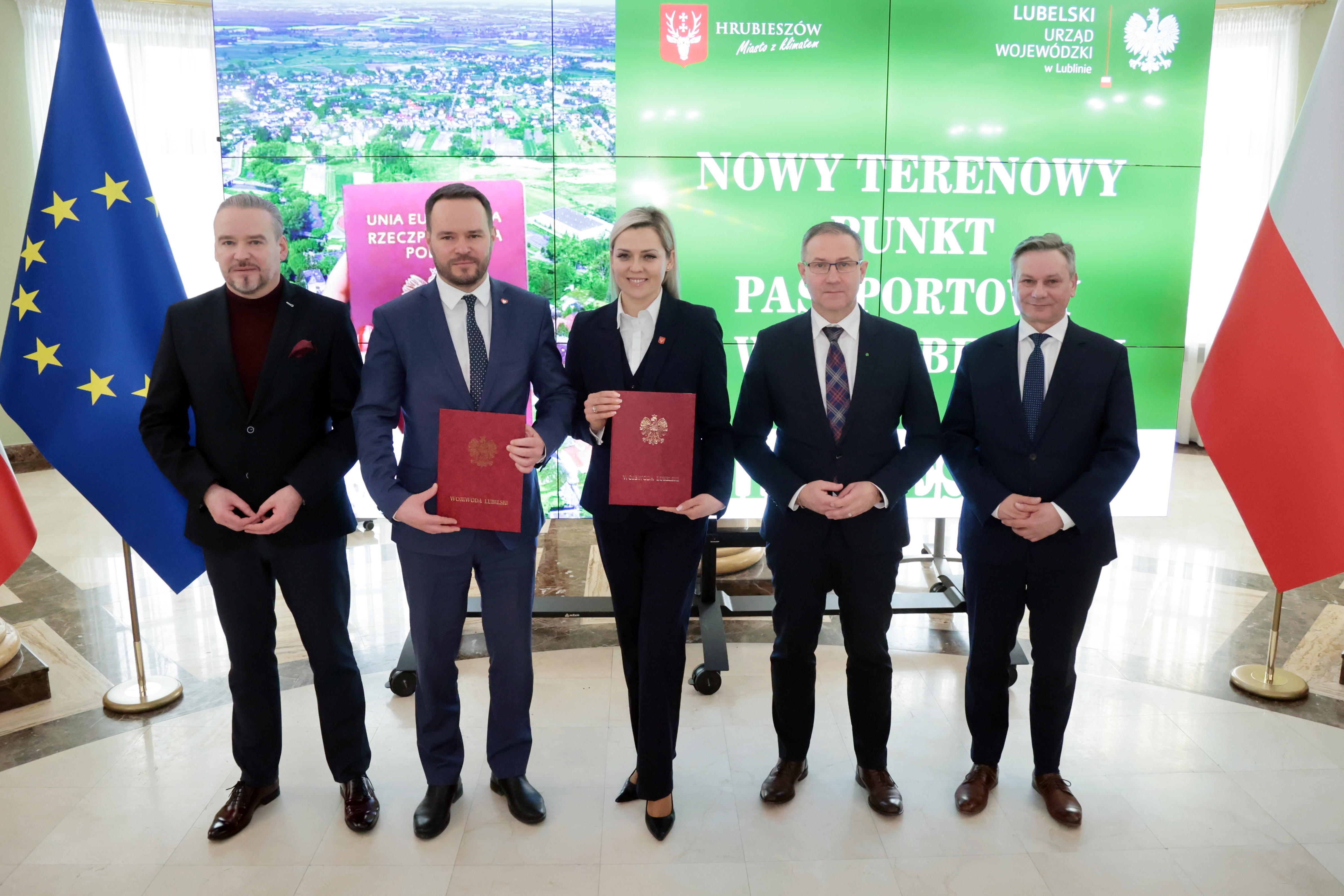 W naszym województwie powstanie kolejny nowy terenowy punkt paszportowy. Już za kilka miesięcy mieszkańcy Hrubieszowa będą mogli złożyć wniosek o paszport w swoim mieście. W środę wojewoda Krzysztof Komorski, w obecności wicewojewodów Wojciecha Wołocha i Andrzeja Maja, podpisał w tej sprawie porozumienie z burmistrz Hrubieszowa - Martą Majewską.