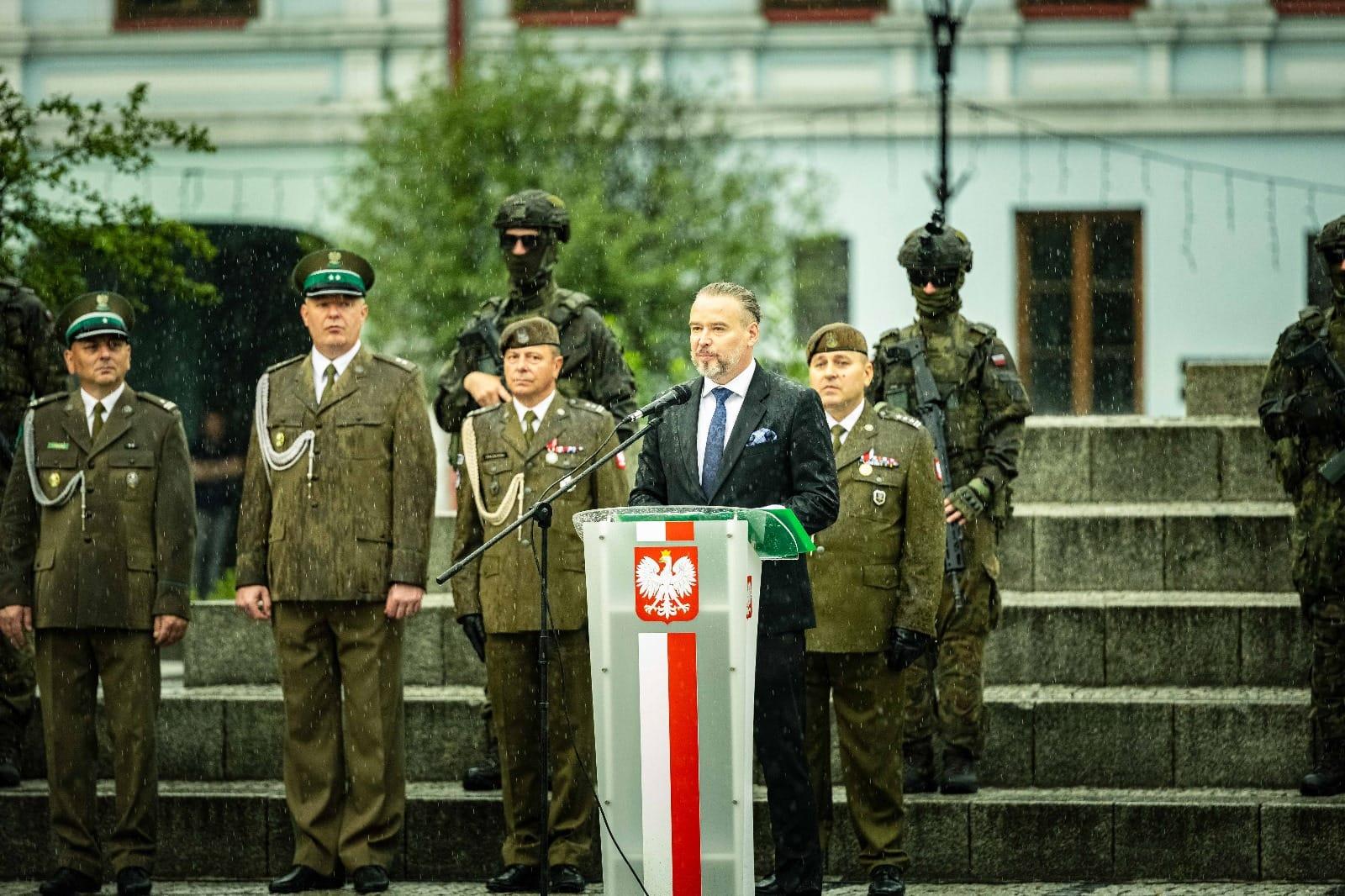 Ta podniosła chwila, wypowiadane słowa i bliskość granicy, za którą reżim zaciska swoje pięści, skłania do refleksji. Odpowiedzialność, determinacja, gotowość do obrony oraz zapewnienie mieszkańcom poczucia bezpieczeństwa to podstawa i filar naszego wspaniałego Państwa i regionu. Dziękuję Wam żołnierze za Wasz trud i poświęcenie