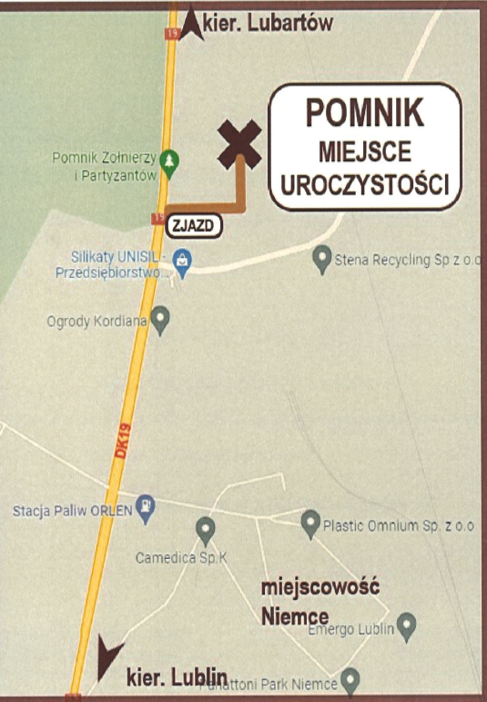 zjazd z DK19 w kierunku Lubartowa za miejscowość Niemce,