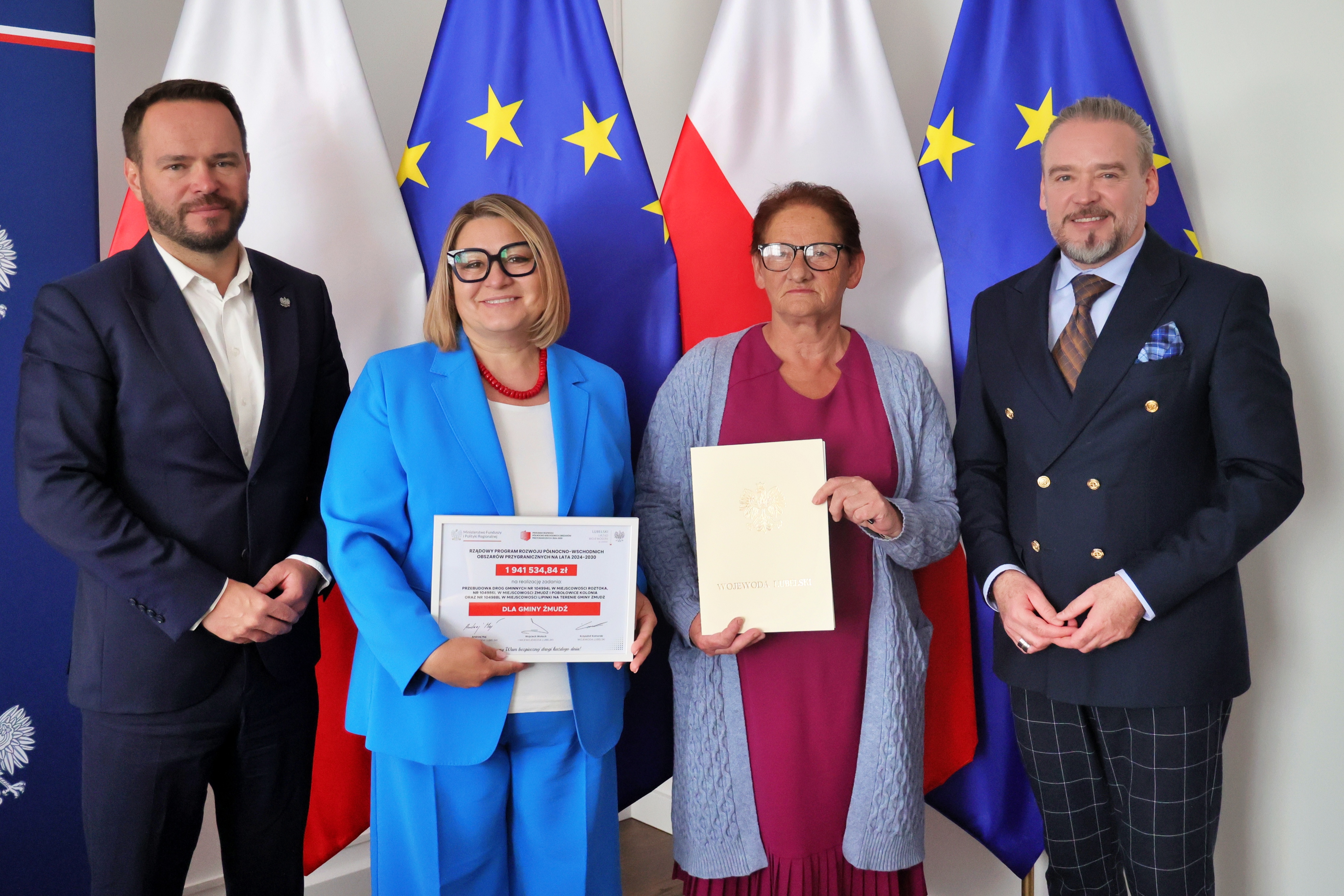 Blisko 2 mln złotych dofinansowania z Rządowego Programu Rozwoju Północno-Wschodnich Obszarów Przygranicznych trafi do gminy Żmudź. We wtorek wojewoda lubelski Krzysztof Komorski i wicewojewoda Wojciech Wołoch podpisali z wójt gminy umowę w tej sprawie.
