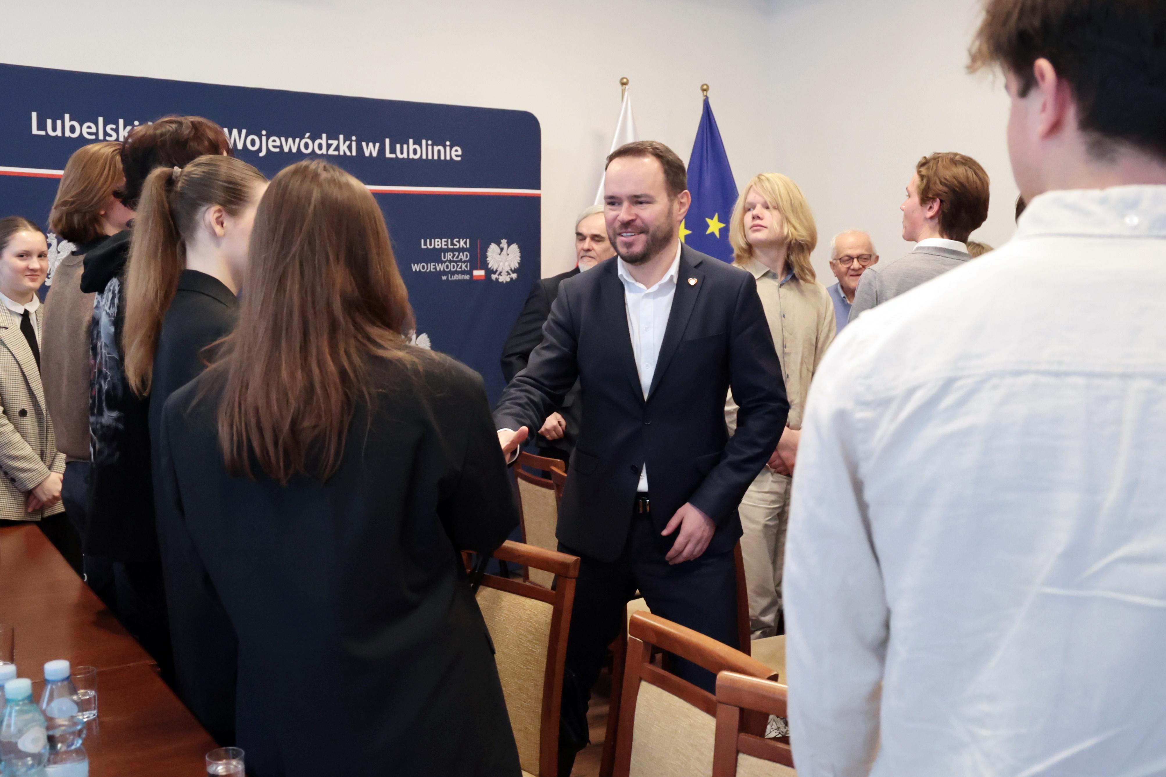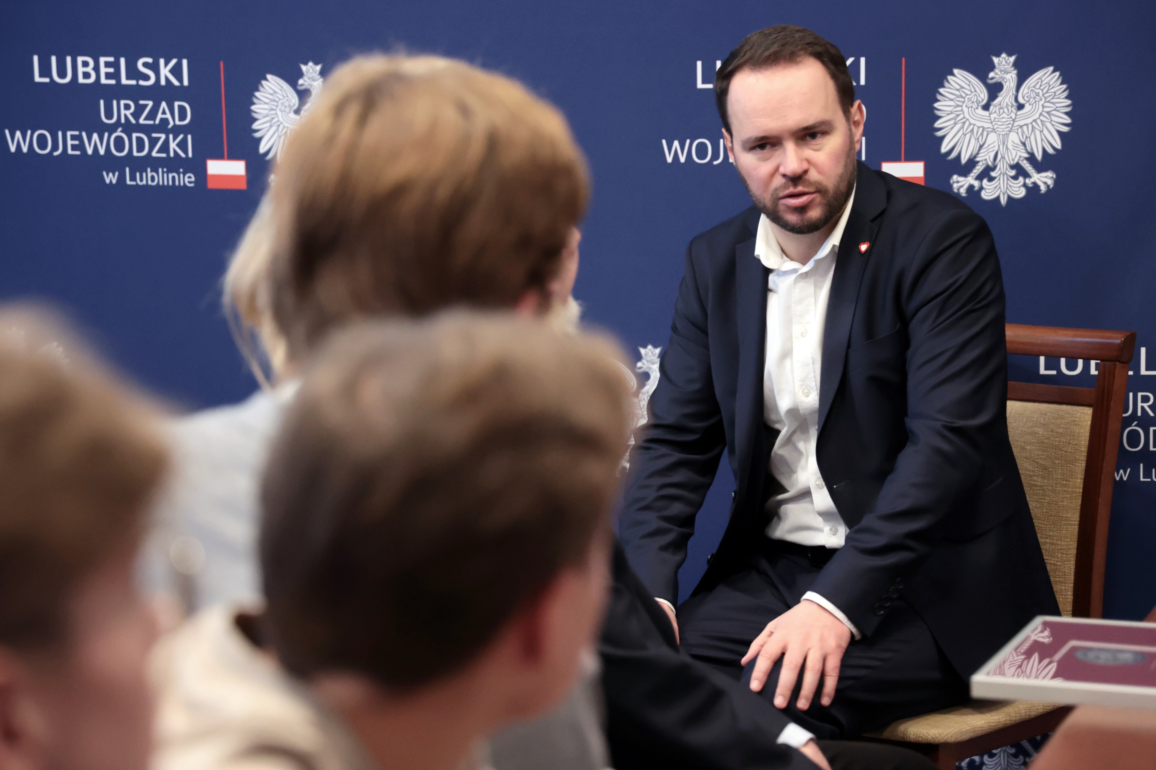 Wojewoda lubelski Krzysztof Komorski gościł we wtorek młodych Polaków pochodzących z Białorusi, którzy teraz mieszkają i uczą się w liceum w Lublinie w ramach projektu edukacyjnego współfinasowanego przez Ministerstwo Edukacji Narodowej. Goście uczestniczyli w kolejnej z cyklu prowadzonych przez LUW lekcji obywatelskich.