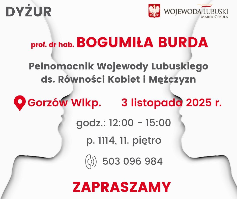Dyżur Pełnomocnika Wojewody Lubuskiego ds. Równości Kobiet i Mężczyzn
